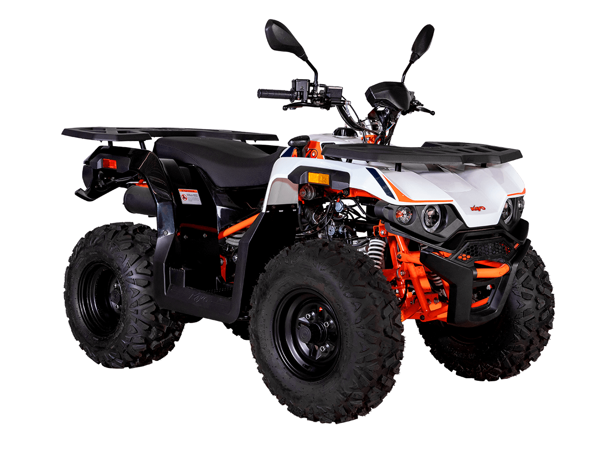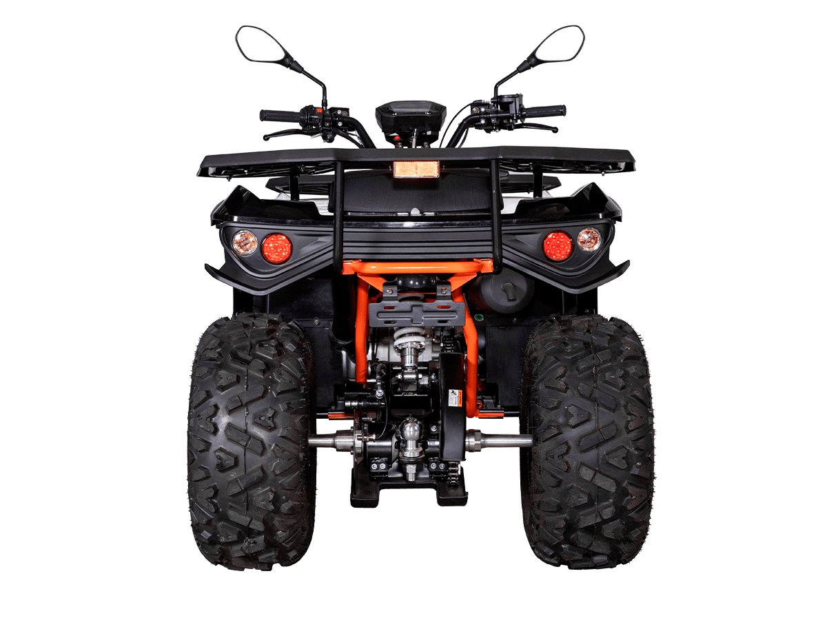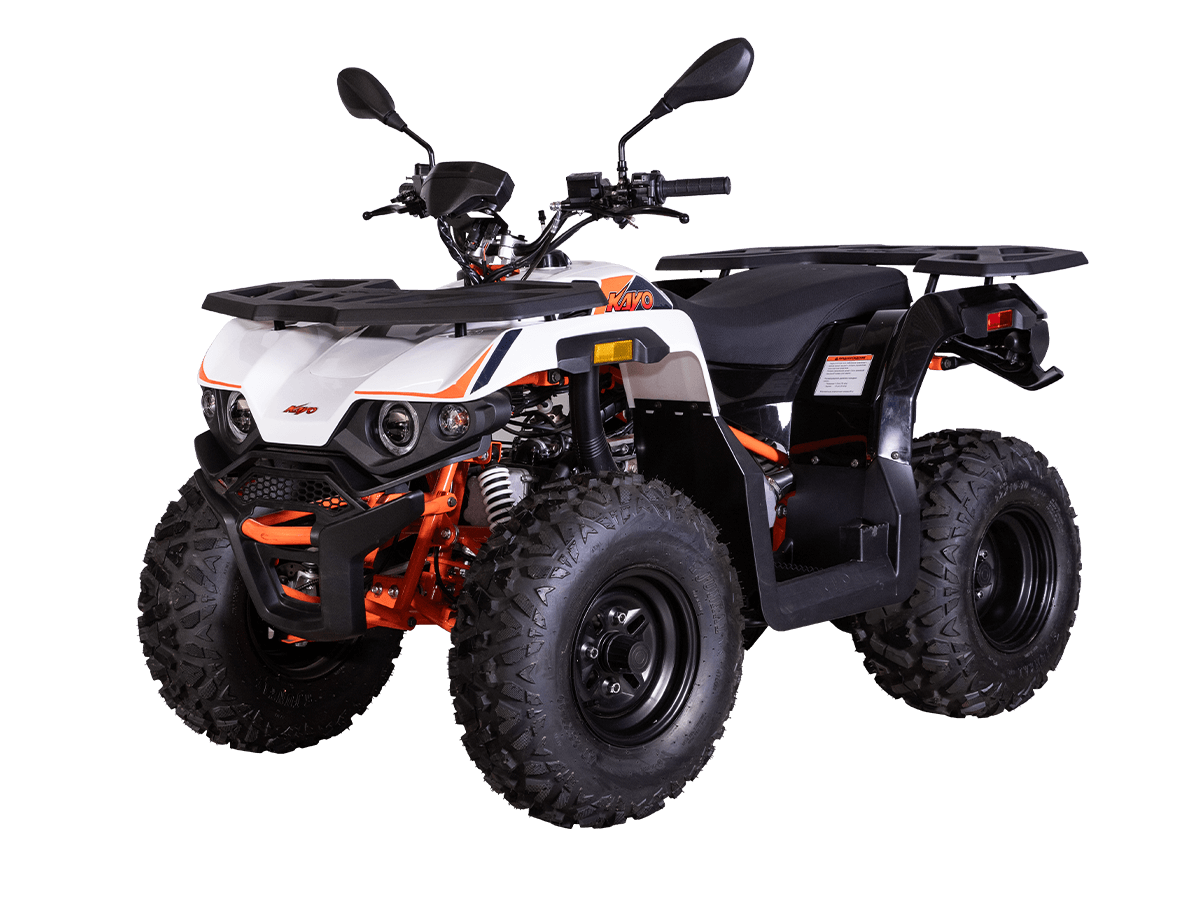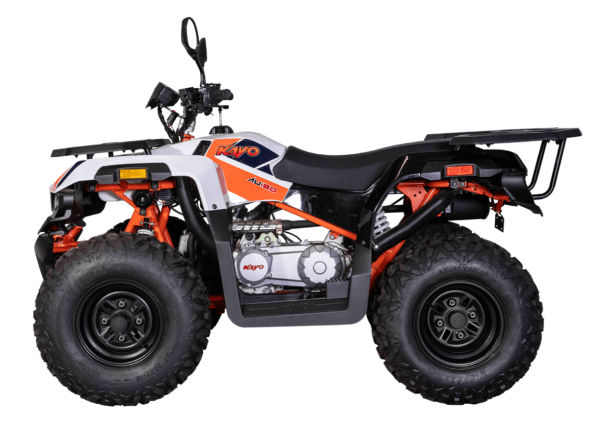 Квадрицикл KAYO AU180 – надёжный и доступный утилитарный квадрицикл с большими возможностями практического применения. Модель пользуется спросом среди поклонников мототехники и любителей бездорожья, поскольку сочетает тяговитый двигатель, энергоёмкую подвеску, отличную эргономику и агрессивный дизайн. Силовая установка представляет собой 4-тактный одноцилиндровый двигатель воздушного охлаждения 1P63QMK объёмом 177 см³, который развивает максимальную мощность 10 л.с. Карбюраторная система подачи топлива сохраняет бесперебойную работу, при этом проста в обслуживании и неприхотлива к качеству топлива. Для исключения масляного голодания в нижней части картера двигателя установлен масляный насос. Это позволят эксплуатировать транспорт под углом до 40˚ без негативных последствий для двигателя. Автоматическая трансмиссия вариаторного типа снабжена реверсом, который облегчает маневрирование в ограниченных пространствах. Привод на ведущие задние колёса осуществляется цепью. Рама квадрицикла из прочного хромомолибденового сплава защищает от повреждений без утяжеления конструкции. Литые алюминиевые диски диаметром 10 дюймов обуты в покрышки с выраженным грунтозацепом. Ходовая часть базируется на передней независимой двухрычажной подвеске с шаровыми опорами и нерегулируемыми амортизаторами. Сзади установлена маятниковая подвеска с регулируемым моноамортизатором. Эффективное замедление с любых скоростей обеспечивают гидравлические дисковые тормоза спереди и сзади. Модель обладает комплектом качественной оптики, широкими защитными крыльями, передней и задней багажными площадками для перевозки небольших грузов, фаркопом для прицепа, а также эргономичным сиденьем и удобным рулевым управлением. Благодаря наличию ПТС технику можно поставить на учёт и ездить по дорогам общего пользования. Купить квадрицикл KAYO AU180 по выгодной цене можно, оформив онлайн-заказ на нашем сайте.