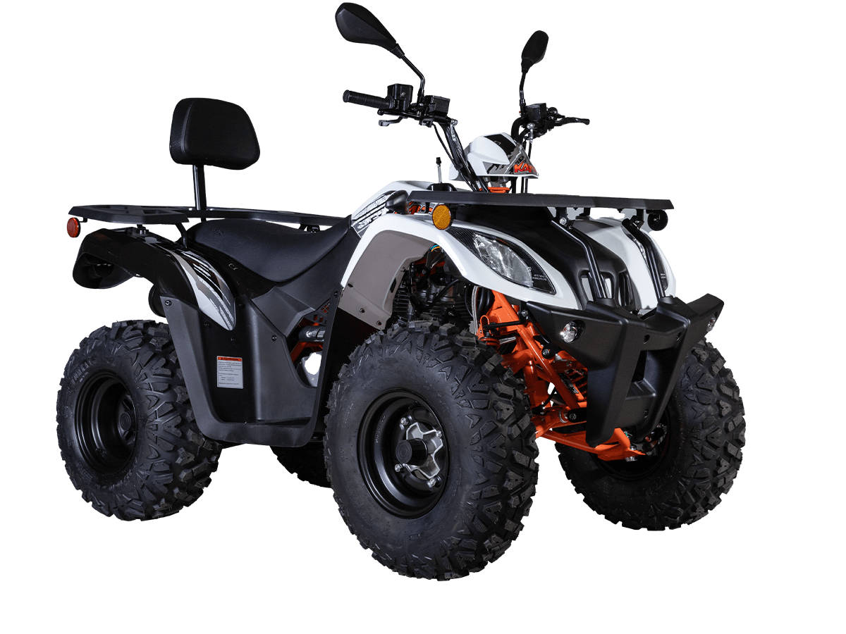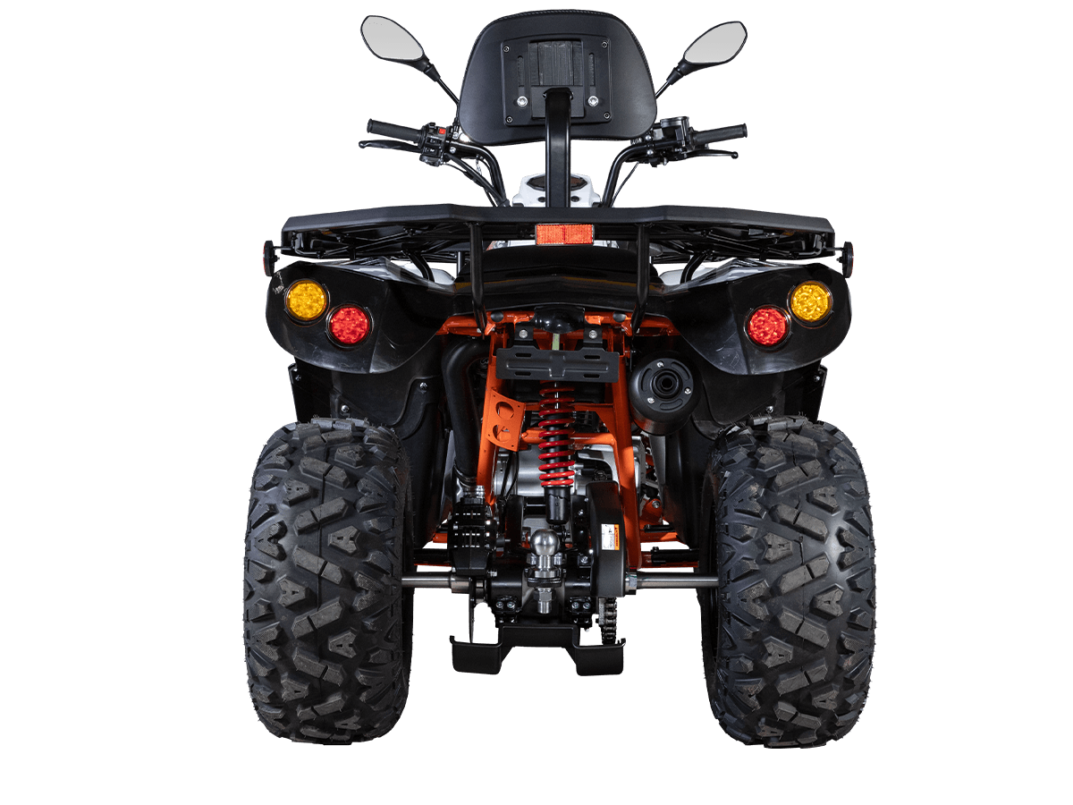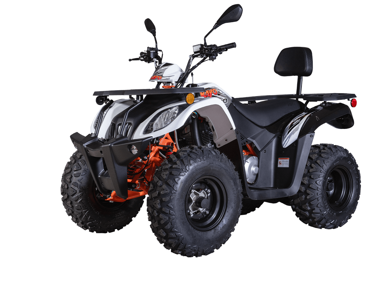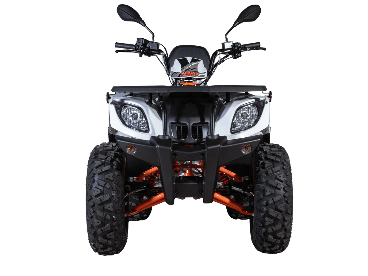 Квадрицикл KAYO AU200 2024 – популярная и доступная модель для любителей внедорожных приключений и активного отдыха. Подходит для райдеров разного возраста, роста и с разным опытом. Квадрицикл оснащён одноцилиндровым 4-тактным двигателем LONCIN LX163FML с вертикальным расположением цилиндра и воздушным охлаждением. Двигатель имеет объём 196 см³ и выдаёт 14 л.с. Наличие балансирного вала позволяет снизить интенсивность вибраций и повышает комфорт во время поездок. За подачу топлива отвечает карбюратор PZ30. Объём топливного бака 9 литров. Для трансмиссии используется вариаторная коробка передач со схемой R-N-F. На крышке вариатора установлен шноркель с высокорасположенным воздухозаборным отверстием. Это позволяет пересекать небольшие водные преграды, не боясь попадания воды в трансмиссию. На квадрицикл установлены колёса диаметром 10 дюймов. Для передней подвески используется амортизатор длиной 260 мм, а сзади – амортизатор длиной 310 мм с регулировками. Для торможения используются гидравлические дисковые тормоза, установленные спереди и сзади. Габариты 1780х955х1050 мм, вес 180 кг. Колёсная база 1120 мм, высота по седлу 760 мм. Все кнопки управления собраны в один компактный пульт: кнопки запуска и остановки двигателя, переключатели светового оборудования, звуковой сигнал, рычаг подсоса. Квадрицикл оснащён передним и задним багажниками из стали с пластиковой облицовкой. Купить квадрицикл KAYO AU200 2024 по выгодной цене можно онлайн на нашем сайте или в одном из салонов сети Роллинг Мото.