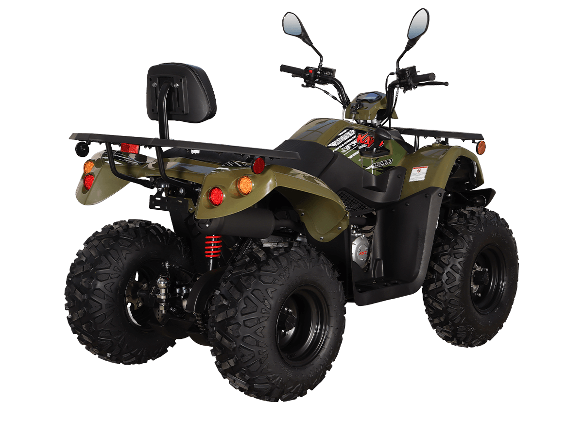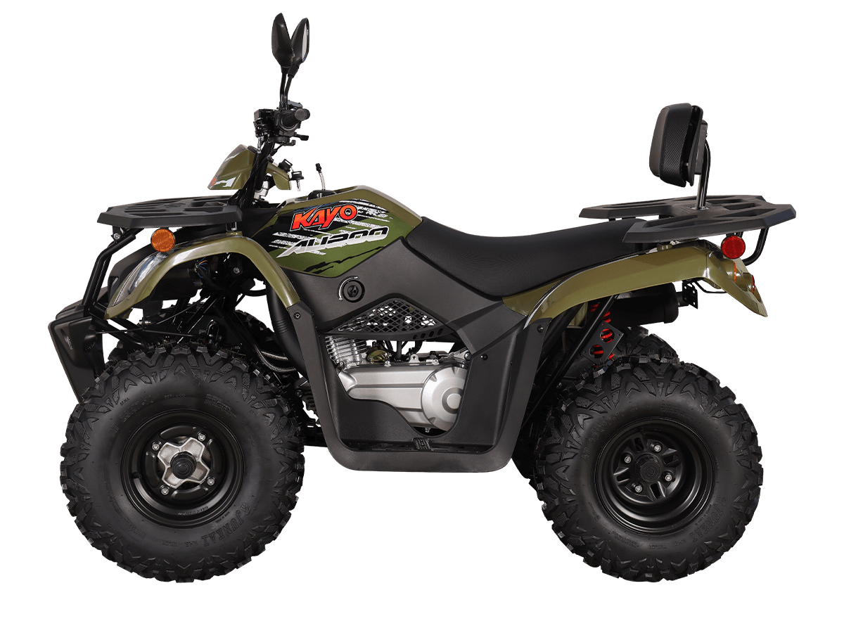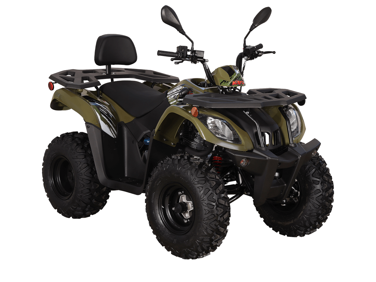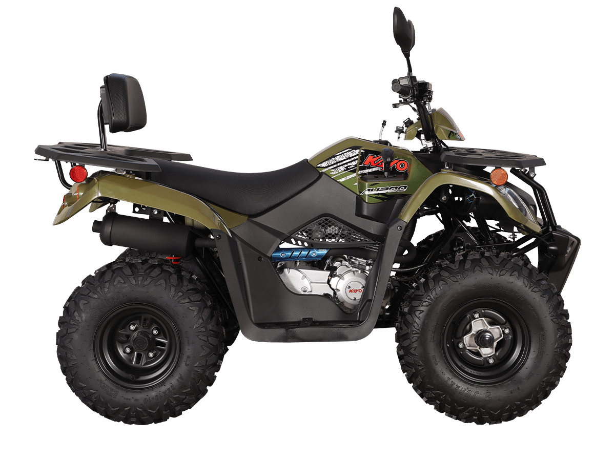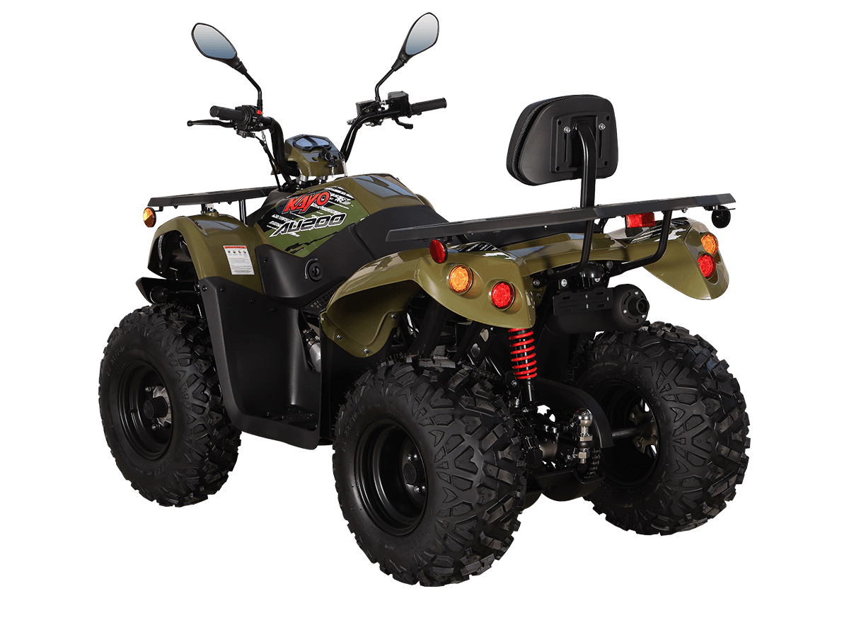 KAYO AU200 в модификации 2024 года - популярная и доступная модель квадрицикла, которая пользуется вниманием широкого круга любителей внедорожных приключений и активного отдыха. Небольшой утилитарный мотовездеход обладает незаурядными возможностями практического использования и рассчитан на людей разного возраста и опыта. В крепкой раме квадрицикла, проверенной годами и тысячами пользователей, установлен 4-тактный мотор с вертикальным расположением цилиндра. Рабочий объем двигателя в 176 кубических сантиметров позволяет развивать максимальную мощность в 13 лошадиных сил. Данный мотор оснащается балансирным валом, что способствует снижению вибраций и положительно сказывается на комфорте передвижения. У KAYO AU200 используется автоматическая трансмиссия на базе вариатора. Рычаг селектора передач имеет три положения: задний ход – нейтраль – вперед. На крышке вариатора установлен шноркель, и его воздухозаборное отверстие расположено довольно высоко. Это дает возможность преодолевать небольшие водные препятствия, не опасаясь попадания воды в трансмиссию. Все кнопки управления оборудованием собраны в один компактный пульт. Здесь находятся кнопки запуска и остановки двигателя, переключатели светового оборудования, кнопка звукового сигнала. Для удобства запуска двигателя рычаг подсоса также вынесен на руль. Как и любой другой утилитарный квадрицикл, KAYO AU200 комплектуется задним и передним багажниками, сделаными из стальных труб и облицованных пластиком. Внимание данный товар поставляется в разобранном виде, в коробке для самостоятельной сборки.
