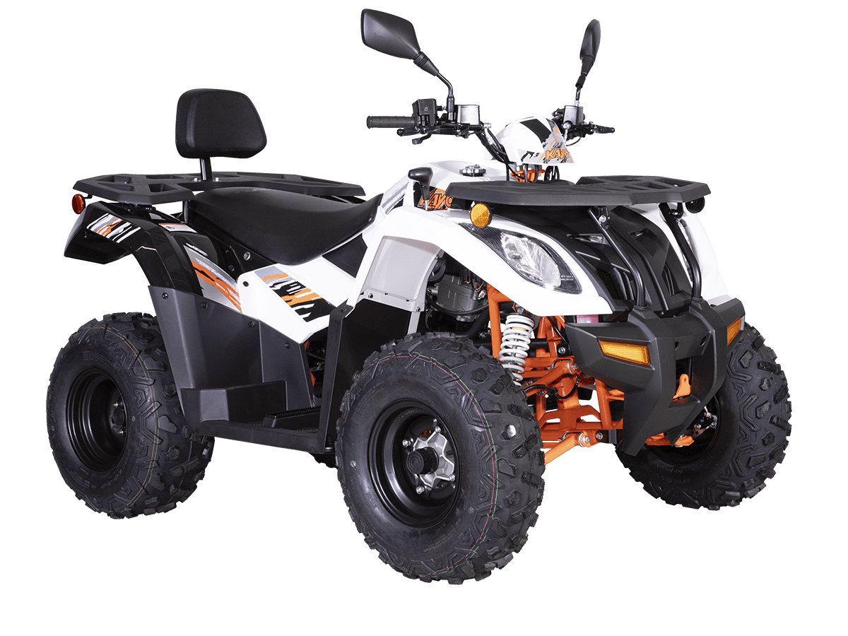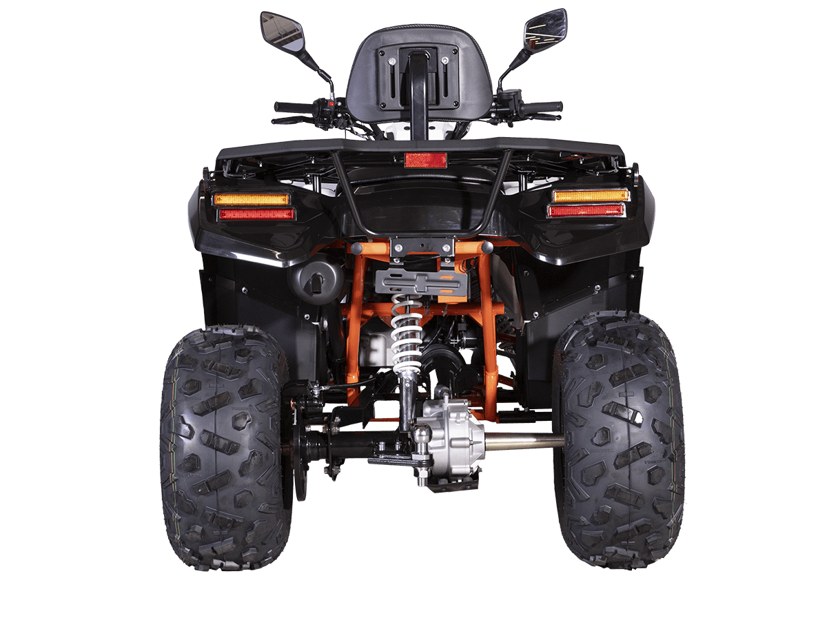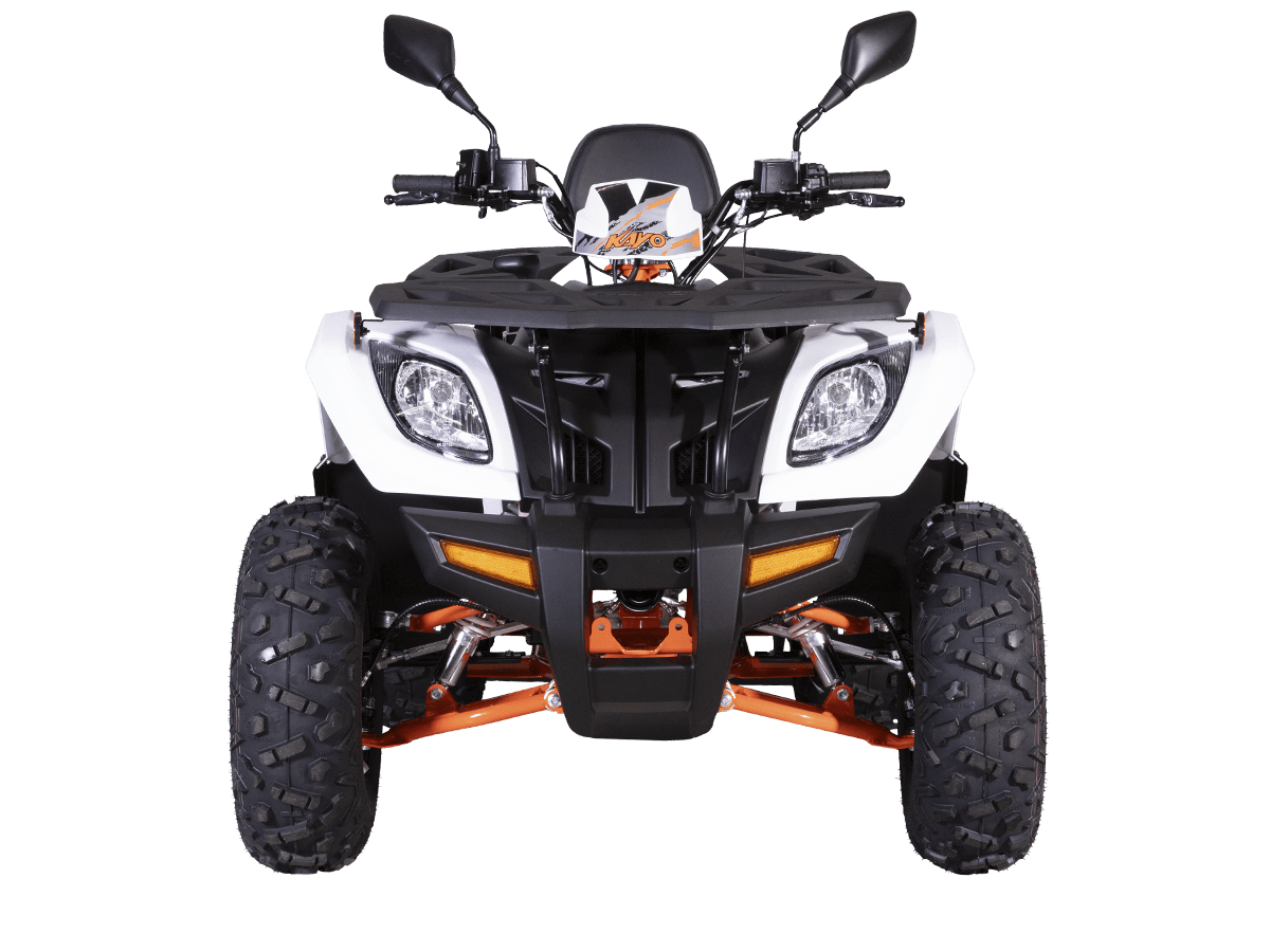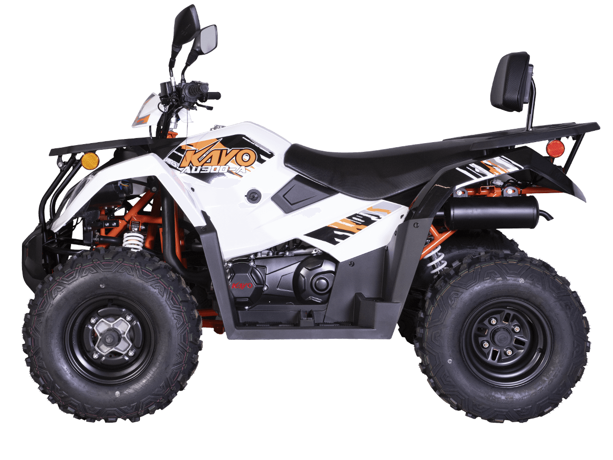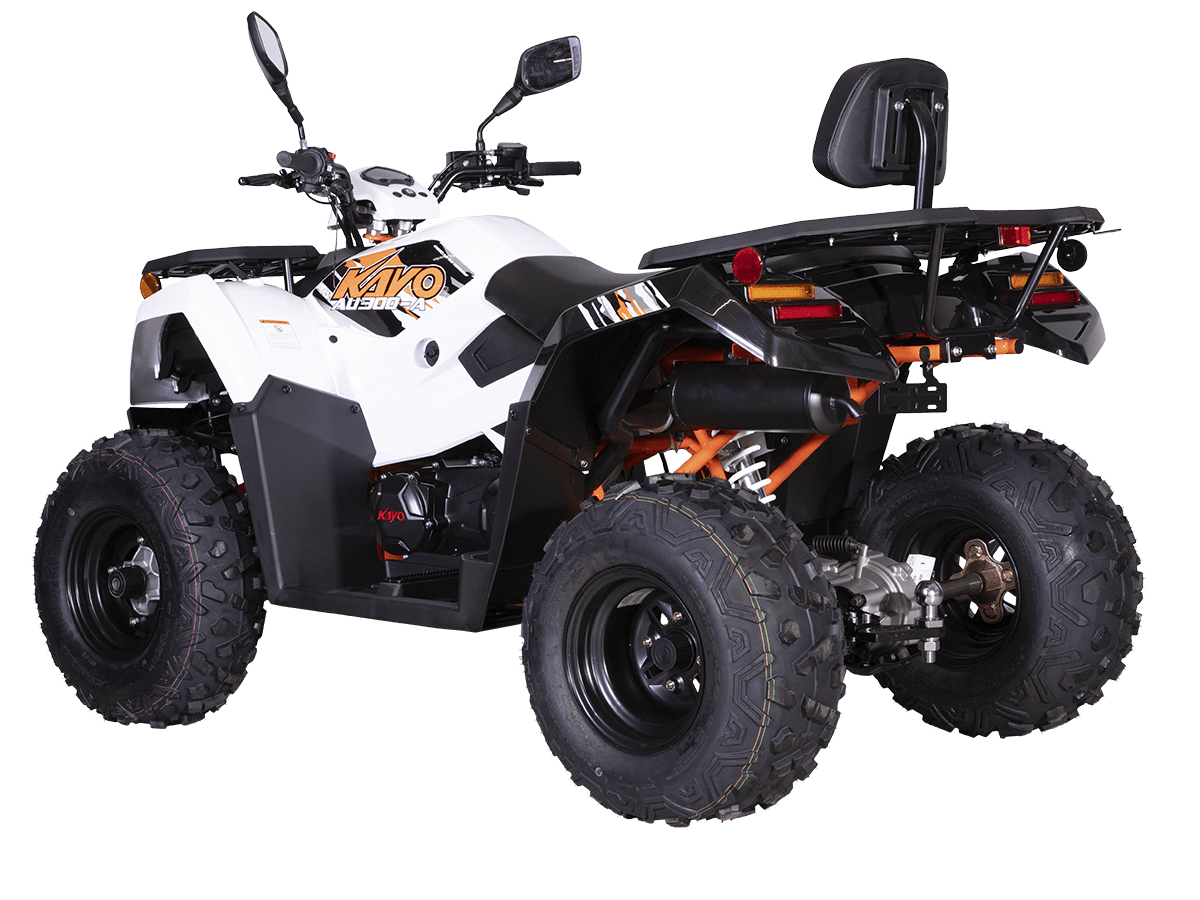 Квадрицикл KAYO AU300 Carb 2024 – отличный вариант для внедорожного экстрима с мощным двигателем, энергоёмкой подвеской и агрессивным дизайном. Квадрицикл оснащён одноцилиндровым 4-тактным двигателем LONCIN (LXCVT300) с вертикальным расположением цилиндра и жидкостным типом охлаждения. Двигатель имеет объём 271 см³ и обеспечивает мощность 23 л.с. На сегодняшний день AU300 является самым мощным утилитарным квадрициклом в модельном ряду KAYO. Карбюраторная система подачи топлива обеспечивает бесперебойную работу техники, лёгкость в обслуживании, а также неприхотливость к качеству топлива. Жидкостная система охлаждения с увеличенным радиатором не допустит перегрева мотора даже при самых жёстких условиях эксплуатации. Модель оснащена вариаторной коробкой передач со схемой L-H-N-R. Вариатор имеет понижающую передачу, незаменимую для жёсткого офф-роуда. Использование карданной передачи на заднюю ось обеспечивает непревзойдённый уровень надёжности. На квадрицикле используются колёса диаметром 10 дюймов. Энергоёмкая длинноходная подвеска позволяет адаптироваться к неровностям дороги и обеспечивает плавное и комфортное вождение на любых типах покрытий, а увеличенная ширина колеи добавляет аппарату устойчивости и проходимости. Спереди установлена независимая подвеска с двойным А-образным рычагом и длиной амортизатора 360 мм. Сзади используется маятник с длиной амортизатора 450 мм. Эффективное замедление с любых скоростей обеспечивают гидравлические дисковые тормоза спереди и сзади. Рама квадрицикла выполнена из хроммолибденового сплава – лёгкого и прочного материала, обеспечивающего отличную жёсткость и защиту от повреждений. Уровень безопасности повышает штатный датчик присутствия. На квадрицикле имеются передний и задний багажники, а также установлен фаркоп с розеткой для подключения прицепа. Благодаря наличию ПТС квадрицикл можно поставить на учёт, чтобы ездить по дорогам общего пользования. Ёмкость топливного бака 12 литров. Габариты 1900х1020х1010 мм, вес 300 кг. Колёсная база 1230 мм, высота по седлу 830 мм. Купить квадрицикл KAYO AU300 Carb 2024 по выгодной цене можно онлайн на нашем сайте или в одном из салонов сети Роллинг Мото.