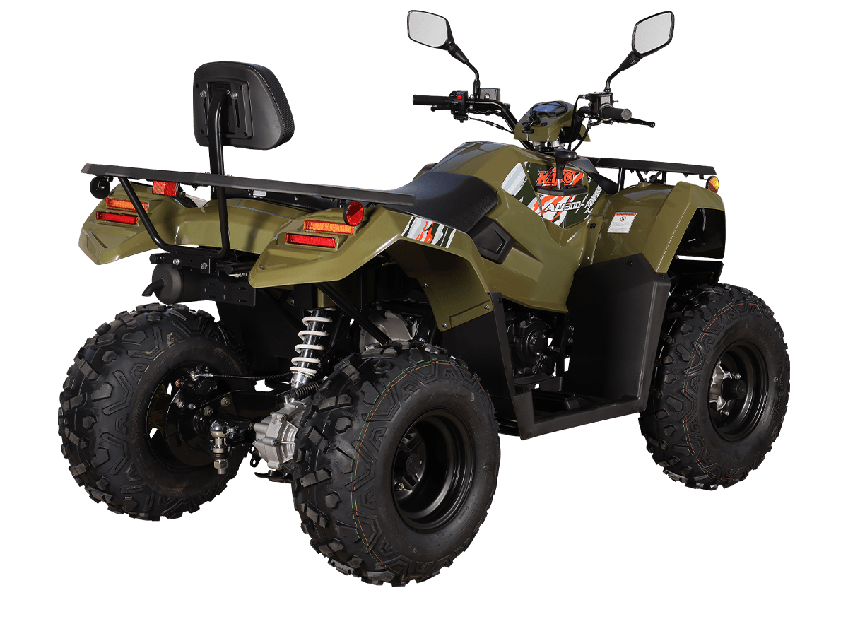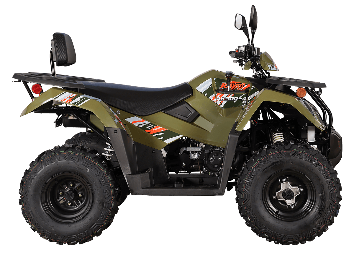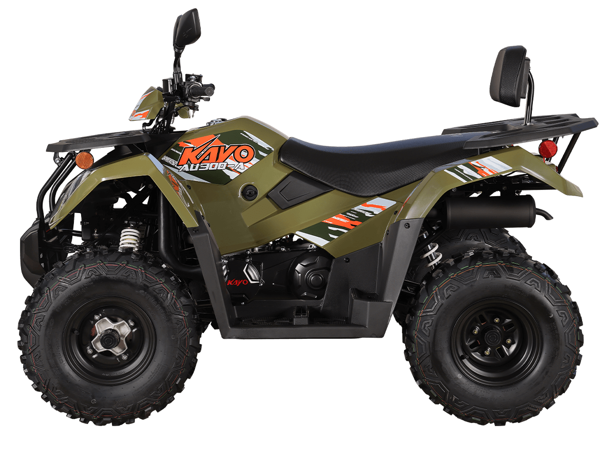 Квадрицикл KAYO AU300 Carb 2025 – отличный вариант для внедорожного экстрима с мощным двигателем, энергоёмкой подвеской и агрессивным дизайном. Квадрицикл оснащён одноцилиндровым 4-тактным двигателем LONCIN (LXCVT300) с вертикальным расположением цилиндра и жидкостным типом охлаждения. Двигатель имеет объём 271 см³ и обеспечивает мощность 23 л.с. На сегодняшний день AU300 является самым мощным утилитарным квадрициклом в модельном ряду KAYO. Карбюраторная система подачи топлива обеспечивает бесперебойную работу техники, лёгкость в обслуживании, а также неприхотливость к качеству топлива. Жидкостная система охлаждения с увеличенным радиатором не допустит перегрева мотора даже при самых жёстких условиях эксплуатации. Модель оснащена вариаторной коробкой передач со схемой L-H-N-R. Вариатор имеет понижающую передачу, незаменимую для жёсткого офф-роуда. Использование карданной передачи на заднюю ось обеспечивает непревзойдённый уровень надёжности. На квадрицикле используются колёса диаметром 10 дюймов. Энергоёмкая длинноходная подвеска позволяет адаптироваться к неровностям дороги и обеспечивает плавное и комфортное вождение на любых типах покрытий, а увеличенная ширина колеи добавляет аппарату устойчивости и проходимости. Спереди установлена независимая подвеска с двойным А-образным рычагом и длиной амортизатора 360 мм. Сзади используется маятник с длиной амортизатора 450 мм. Эффективное замедление с любых скоростей обеспечивают гидравлические дисковые тормоза спереди и сзади. Рама квадрицикла выполнена из хроммолибденового сплава – лёгкого и прочного материала, обеспечивающего отличную жёсткость и защиту от повреждений. Уровень безопасности повышает штатный датчик присутствия. На квадрицикле имеются передний и задний багажники, а также установлен фаркоп с розеткой для подключения прицепа. Благодаря наличию ПТС квадрицикл можно поставить на учёт, чтобы ездить по дорогам общего пользования. Ёмкость топливного бака 12 литров. Габариты 1900х1020х1010 мм, вес 300 кг. Колёсная база 1230 мм, высота по седлу 830 мм. Купить квадрицикл KAYO AU300 Carb 2025 по выгодной цене можно онлайн на нашем сайте или в одном из салонов сети Роллинг Мото.