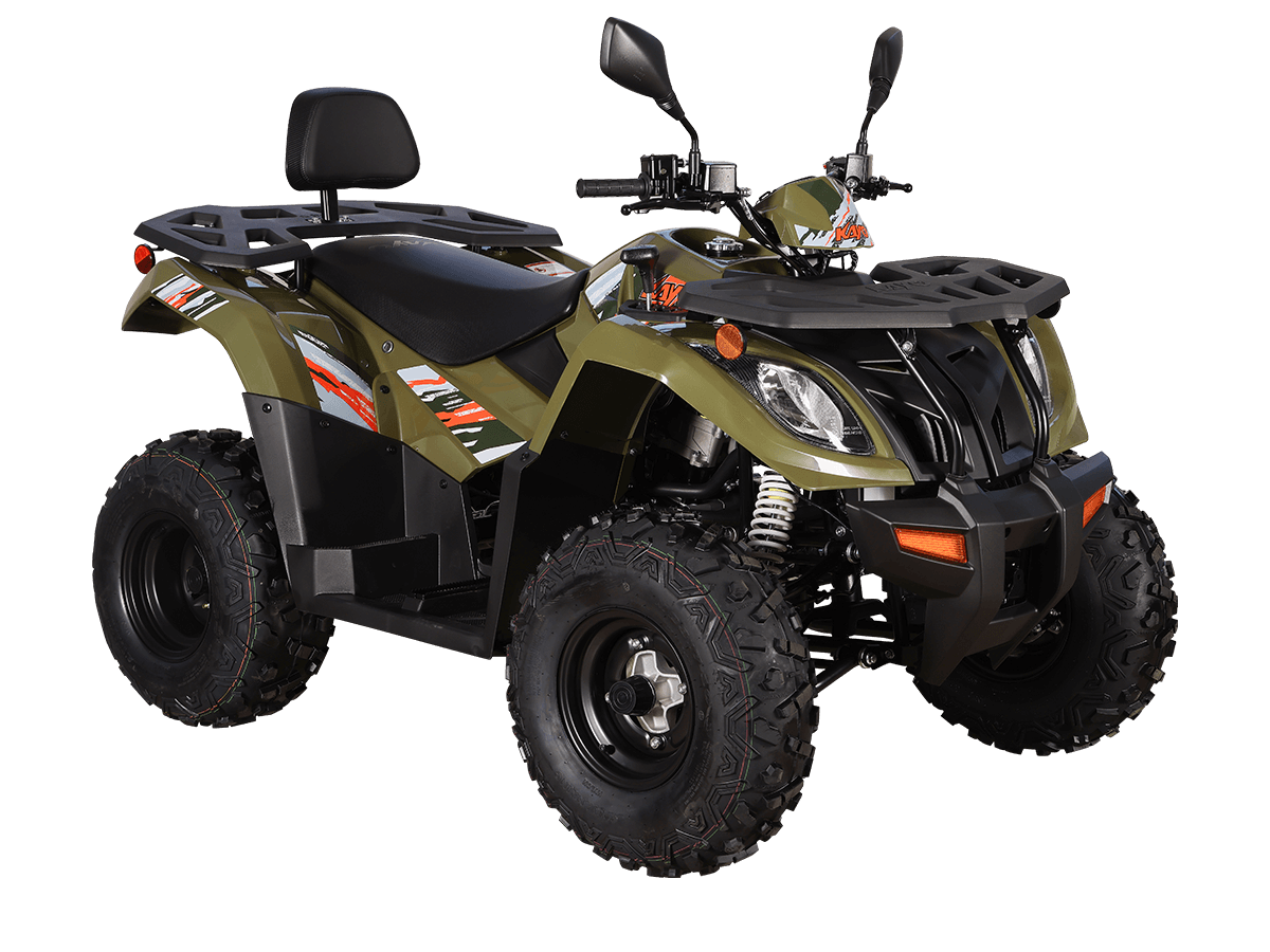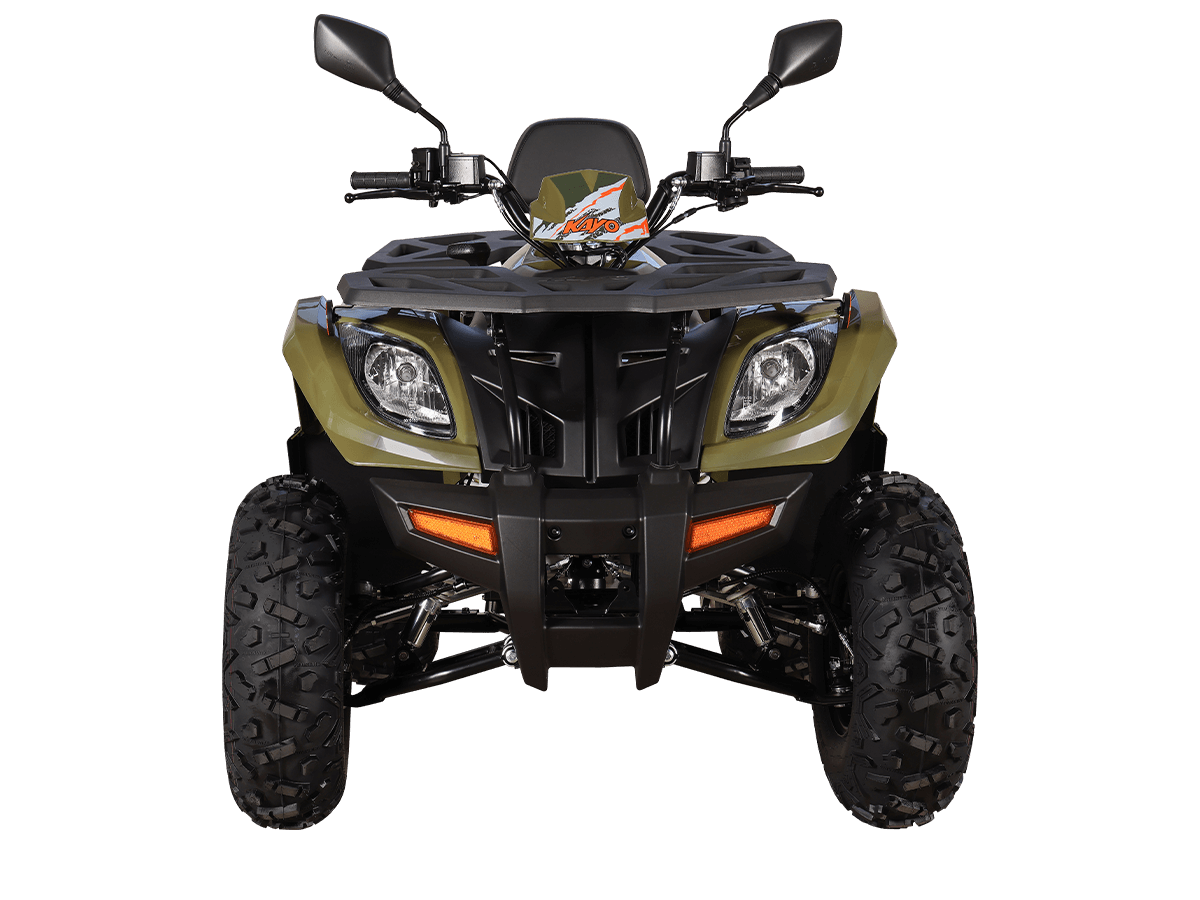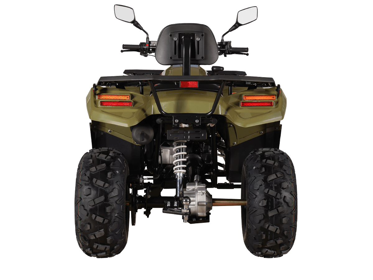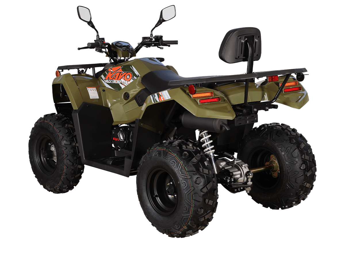 Квадрицикл KAYO AU300 Carb 2025 – отличный вариант для внедорожного экстрима с мощным двигателем, энергоёмкой подвеской и агрессивным дизайном. Квадрицикл оснащён одноцилиндровым 4-тактным двигателем LONCIN (LXCVT300) с вертикальным расположением цилиндра и жидкостным типом охлаждения. Двигатель имеет объём 271 см³ и обеспечивает мощность 23 л.с. На сегодняшний день AU300 является самым мощным утилитарным квадрициклом в модельном ряду KAYO. Карбюраторная система подачи топлива обеспечивает бесперебойную работу техники, лёгкость в обслуживании, а также неприхотливость к качеству топлива. Жидкостная система охлаждения с увеличенным радиатором не допустит перегрева мотора даже при самых жёстких условиях эксплуатации. Модель оснащена вариаторной коробкой передач со схемой L-H-N-R. Вариатор имеет понижающую передачу, незаменимую для жёсткого офф-роуда. Использование карданной передачи на заднюю ось обеспечивает непревзойдённый уровень надёжности. На квадрицикле используются колёса диаметром 10 дюймов. Энергоёмкая длинноходная подвеска позволяет адаптироваться к неровностям дороги и обеспечивает плавное и комфортное вождение на любых типах покрытий, а увеличенная ширина колеи добавляет аппарату устойчивости и проходимости. Спереди установлена независимая подвеска с двойным А-образным рычагом и длиной амортизатора 360 мм. Сзади используется маятник с длиной амортизатора 450 мм. Эффективное замедление с любых скоростей обеспечивают гидравлические дисковые тормоза спереди и сзади. Рама квадрицикла выполнена из хроммолибденового сплава – лёгкого и прочного материала, обеспечивающего отличную жёсткость и защиту от повреждений. Уровень безопасности повышает штатный датчик присутствия. На квадрицикле имеются передний и задний багажники, а также установлен фаркоп с розеткой для подключения прицепа. Благодаря наличию ПТС квадрицикл можно поставить на учёт, чтобы ездить по дорогам общего пользования. Ёмкость топливного бака 12 литров. Габариты 1900х1020х1010 мм, вес 300 кг. Колёсная база 1230 мм, высота по седлу 830 мм. Купить квадрицикл KAYO AU300 Carb 2025 по выгодной цене можно онлайн на нашем сайте или в одном из салонов сети Роллинг Мото.