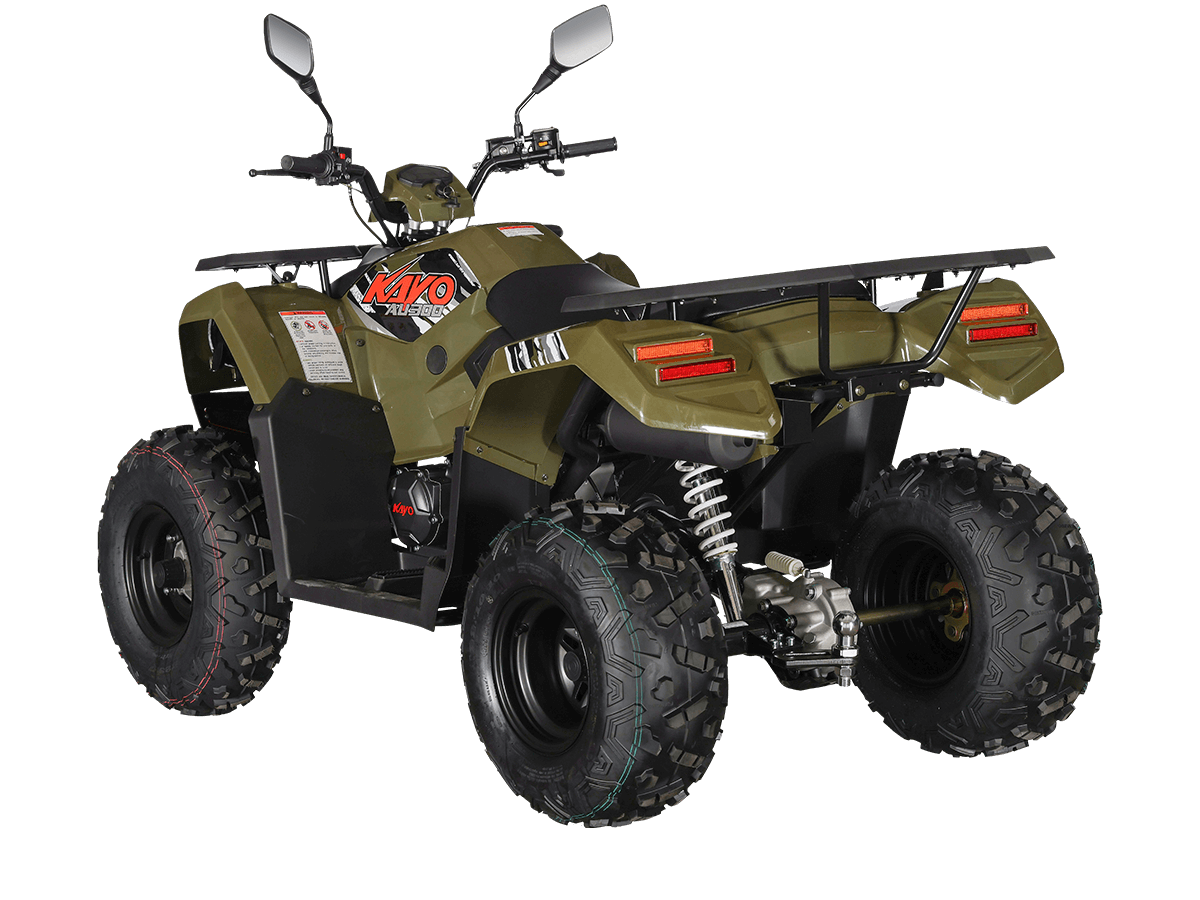 Квадрицикл оснащён энергоёмкой длинноходной подвеской, которая позволяет ему адаптироваться к неровностям поверхности и обеспечивает плавное и комфортное вождение на любых типах покрытий, а увеличенная ширина колеи добавляет аппарату устойчивости и проходимости. Эффективное замедление с любых скоростей обеспечивают гидравлические дисковые тормоза спереди и сзади. Уровень безопасности повышает штатный датчик присутствия. На квадрицикле имеются передний и задний багажники, а также установлен фаркоп с розеткой для подключения прицепа. Благодаря наличию ПТС квадрицикл можно поставить на учёт, чтобы ездить по дорогам общего пользования. Квадрицикл сочетает в себе отличные технические характеристики, комфорт и надёжность, что позволяет вам ощутить настоящую свободу на любой дороге. Купить квадрицикл KAYO AU300 по невероятно низкой цене можно, оформив онлайн-заказ на нашем сайте.