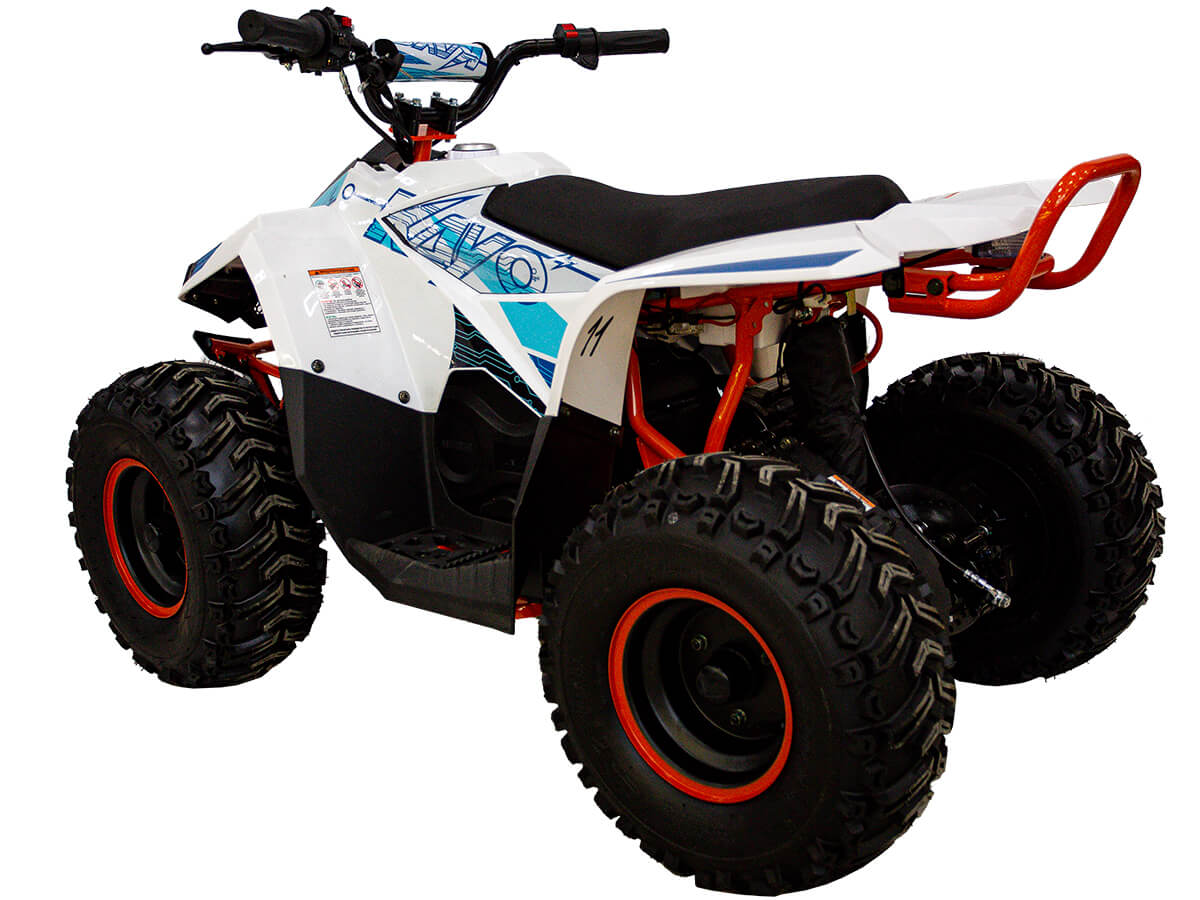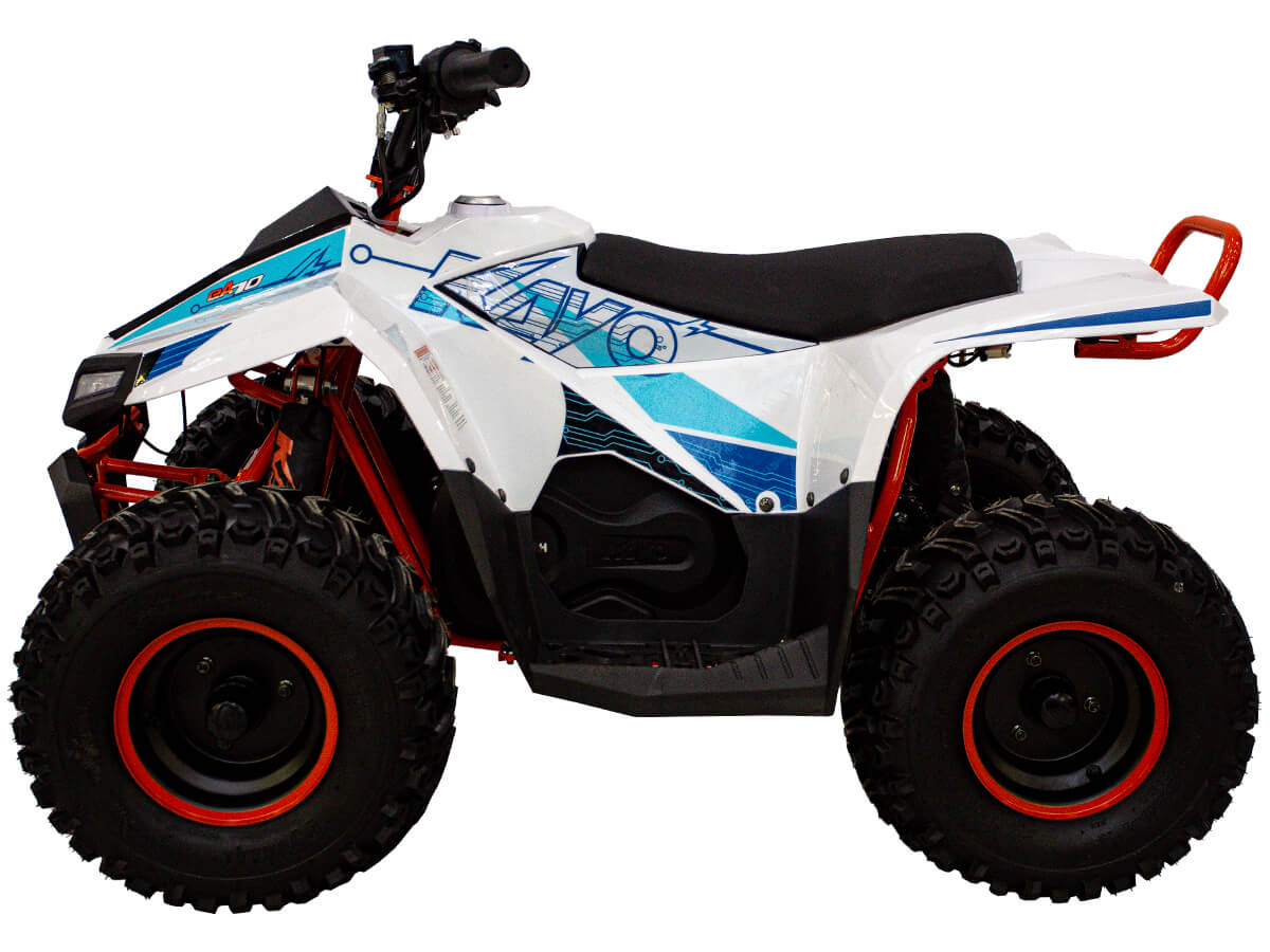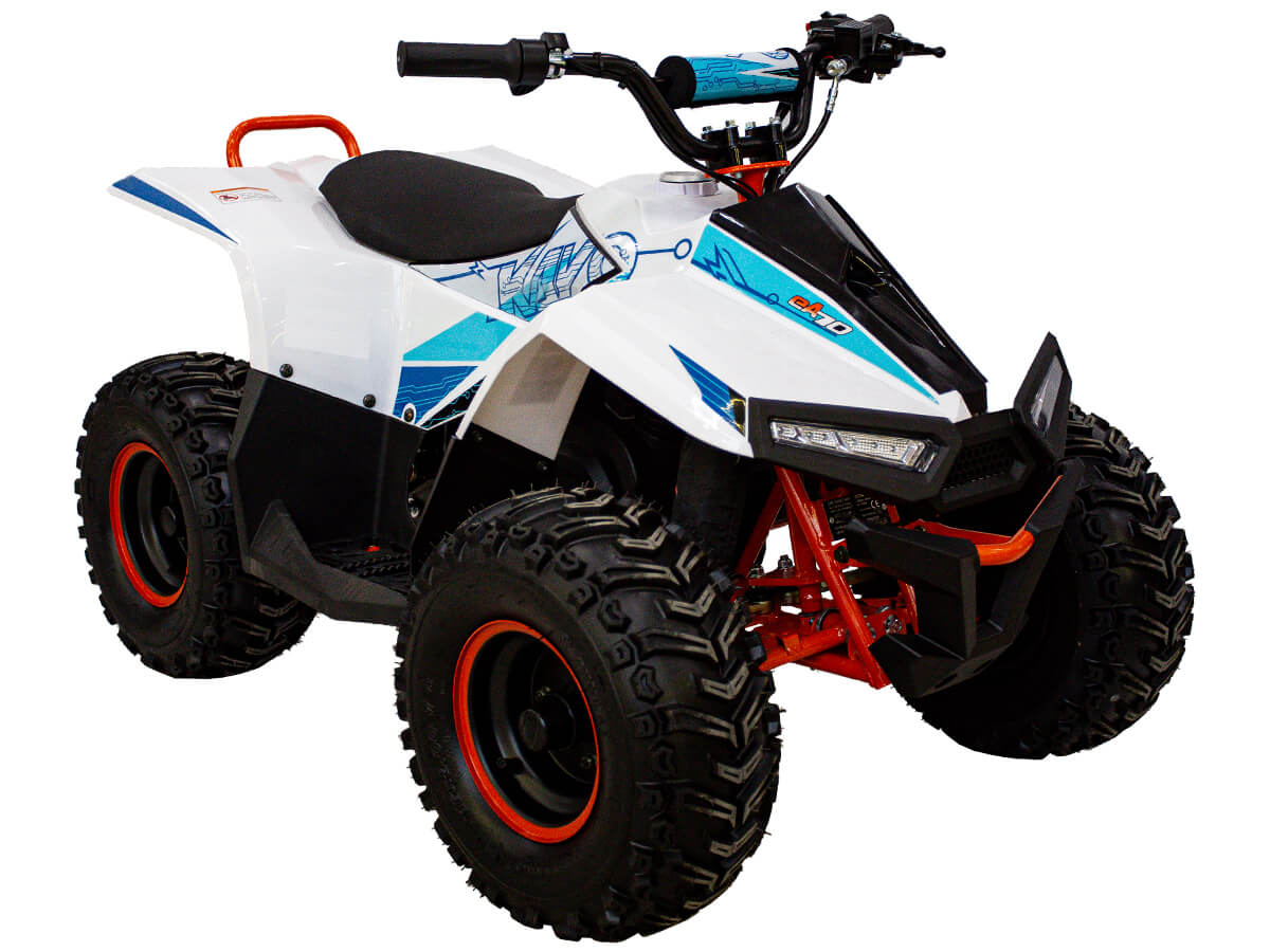 Квадроцикл KAYO eA70 2024 – послушный и лёгкий в управлении электро ATV, созданный для освоения основ. Это мощная внедорожная техника для весёлых и безопасных заездов, которая подходит для детей от 4 до 8 лет – лучший старт для юного гонщика! Квадроцикл оснащён щёточным электродвигателем мощностью 1400W. Обеспечивает плавную и бесшумную езду без выхлопных газов. Свинцово-кислотный аккумулятор 48V 20A обеспечивает запас хода 50 км. Полная зарядка аккумулятора занимает около 8 часов. Трансмиссия представлена 3-ступенчатой коробкой с реверсом. Квадроцикл имеет систему плавного ускорения и торможения, что обеспечивает комфорт и безопасность во время заездов. Имеется регулируемый ограничитель максимальной скорости. Грузоподъёмность квадроцикла 50 кг. Диаметр колёс 7 дюймов. Подвеска спереди представлена нерегулируемым амортизатором длиной 250 мм, а сзади – регулируемым амортизатором длиной 235 мм. Сзади установлен гидравлический дисковый тормоз. Приборная панель представлена электронным дисплеем, куда выводится информация о скорости, заряде аккумулятора и километраже. Габариты квадроцикла 1250х780х820 мм, вес 93 кг. Колёсная база 790 мм, высота по седлу 600 мм. Купить квадроцикл KAYO eA70 2024 по выгодной цене можно онлайн на нашем сайте или в одном из салонов сети Роллинг Мото.