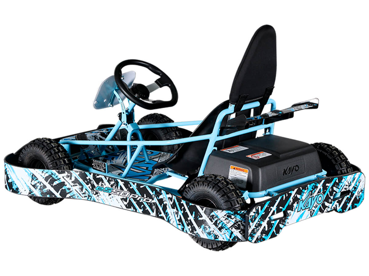Квадроцикл KAYO еS50 Pro – детская модель с электрическим двигателем для весёлых и безопасных заездов на природе. Оснащён щёточным двигателем постоянного тока мощностью 800 Вт с воздушным охлаждением. Обеспечивает плавную и бесшумную езду без выхлопных газов. Свинцово-кислотный аккумулятор 36V9AH обеспечивает около 70 минут непрерывной работы на одном заряде. Полная зарядка аккумулятора занимает 5-6 часов. Имеет 2 скоростных режима: 12 км/ч и 19 км/ч. Трансмиссия представлена 2-ступенчатой коробкой передач с реверсом. На квадроцикле используются колёса диаметром 3 дюйма. На задних колёсах установлены механические дисковые тормоза. Габариты 1225х830х720 мм. Высота по седлу 175 мм, клиренс 95 мм, колёсная база 850 мм. Сухой вес 43 кг. Купить квадроцикл KAYO еS50 Pro по выгодной цене можно онлайн на нашем сайте или в одном из салонов сети Роллинг Мото.