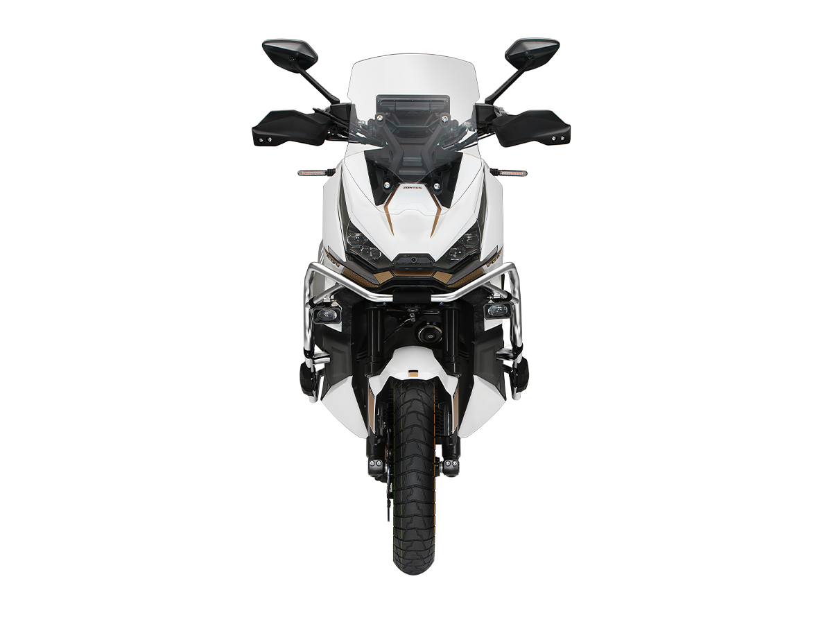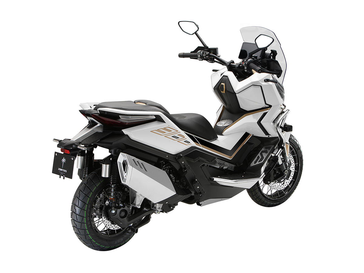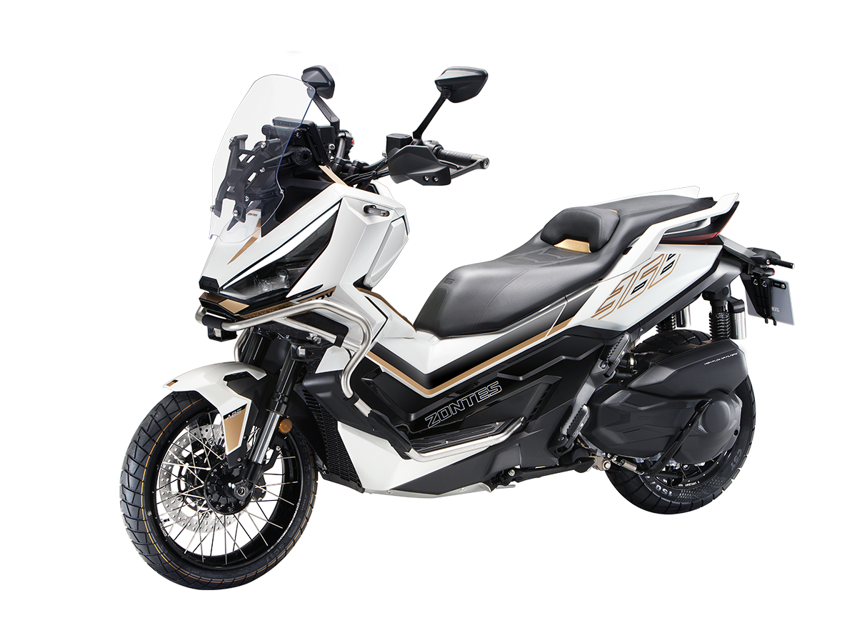 Скутер ZONTES ZT368-G – максискутер двойного назначения, готовый пронестись по улицам города за его пределы и отправиться по грунтовым тропам прокладывать свой маршрут туда, куда вам потребуется. Регулируемая подвеска с перевёрнутой телескопической вилкой спереди обеспечит отличную управляемость и устойчивость в любых условиях. Силовая установка представлена одноцилиндровым 4-тактным двигателем. Двигатель имеет объём 368 см³ и обеспечивает мощность в 38,8 л.с. Оснащён инжектором BOSCH, системой жидкостного охлаждения и вариатором. Запуск двигателя осуществляется с помощью бесключевого доступа. Ёмкость топливного бака 17,5 литра. Колёса имеют диаметр 17 дюймов спереди и 14 дюймов сзади. Для подвески спереди используется телескопическая вилка перевёрнутого типа, а сзади установлены 2 гидравлических амортизатора. Гидравлические дисковые тормоза произведены компанией J.JUAN, входящей в холдинг BREMBO. Мотоцикл также оснащён 2-канальной ABS-системой, противобуксовочной системой TCS System и датчиками давления в шинах. ZT350-G оборудован яркой LED-фарой, мультимедийной приборной панелью с TFT-дисплеем, имеются 2 USB-порта. Габариты скутера 2230х925х1290 мм. Колёсная база 1560 мм. Высота по седлу 795 мм. Вес 198 кг. Комплектация и внешний вид мотоцикла могут отличаться в зависимости от поставки. Изображение на сайте не гарантирует наличие тех или иных опций. Уточняйте информацию при оформлении заказа. Купить скутер ZONTES ZT368-G по выгодной цене можно онлайн на нашем сайте или в одном из салонов сети Роллинг Мото.