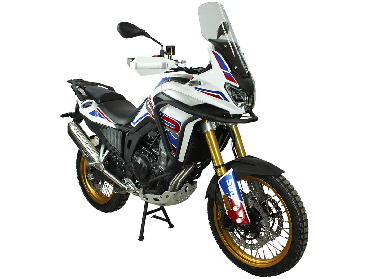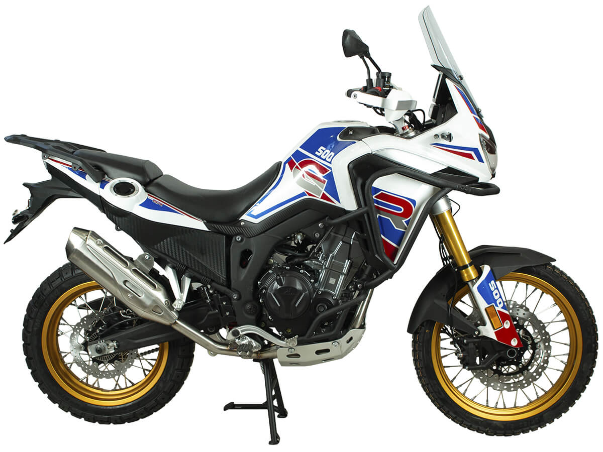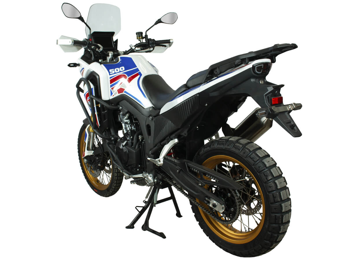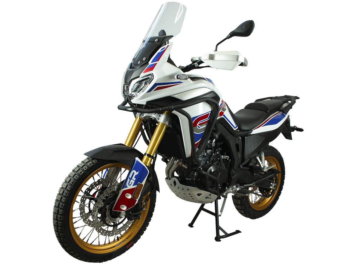 Мотоцикл GR500 21/18 ПТС – туристический эндуро для путешествий и скоростных поездок. Оснащён 2-цилиндровым 4-тактным двигателем LONCIN с жидкостным охлаждением. Имеет объём 500 см3 и выдаёт мощность в 47 л.с. Система подачи топлива представлена инжектором BOSCH. Механическая коробка передач с 6 ступенями имеет классическую схему 1-N-2-3-4-5-6. Суммарный объём 2 топливных баков 39 литров, чего хватит для самых долгих поездок. На мотоцикле установлены колёса диаметром 21 и 18 дюймов с укреплёнными спицами. Подвеска спереди представлена телескопической вилкой перевёрнутого типа SZC Pro, сзади используется центральный амортизатор SZC. Подвеску можно регулировать на сжатие и отбой. Передний тормоз – двойной плавающий диск диаметром 298 мм с 4-поршневым суппортом. Задний – одиночный диск диаметром 240 мм с 2-поршневым суппортом. Мотоцикл оснащён ABS-системой от BOSCH. Мотоцикл с ПТС подходит для использования на дорогах общего пользования. Также подходит для использования на труднопроходимых маршрутах благодаря тщательно продуманной эргономике и регулируемой подвеске. Стальная рама обеспечивает правильную развесовку и хорошую управляемость при поворотах на высоких скоростях. Для комфорта в поездках имеются высокое ветровое стекло, защита рук, картера и дуги. При необходимости на багажник можно установить кофр. Приборная панель представлена современным ЖК-экраном. Имеется подсветка пультов управления и USB-порт с быстрой зарядкой. Габариты мотоцикла 2200×860×1370 мм. Высота по седлу 820 мм. Вес 190 кг. Комплектация и внешний вид мотоцикла могут отличаться в зависимости от поставки. Изображение на сайте не гарантирует наличие тех или иных опций. Уточняйте информацию при оформлении заказа. Купить мотоцикл GR500 21/18 ПТС по выгодной цене можно онлайн на нашем сайте или в одном из салонов сети Роллинг Мото.