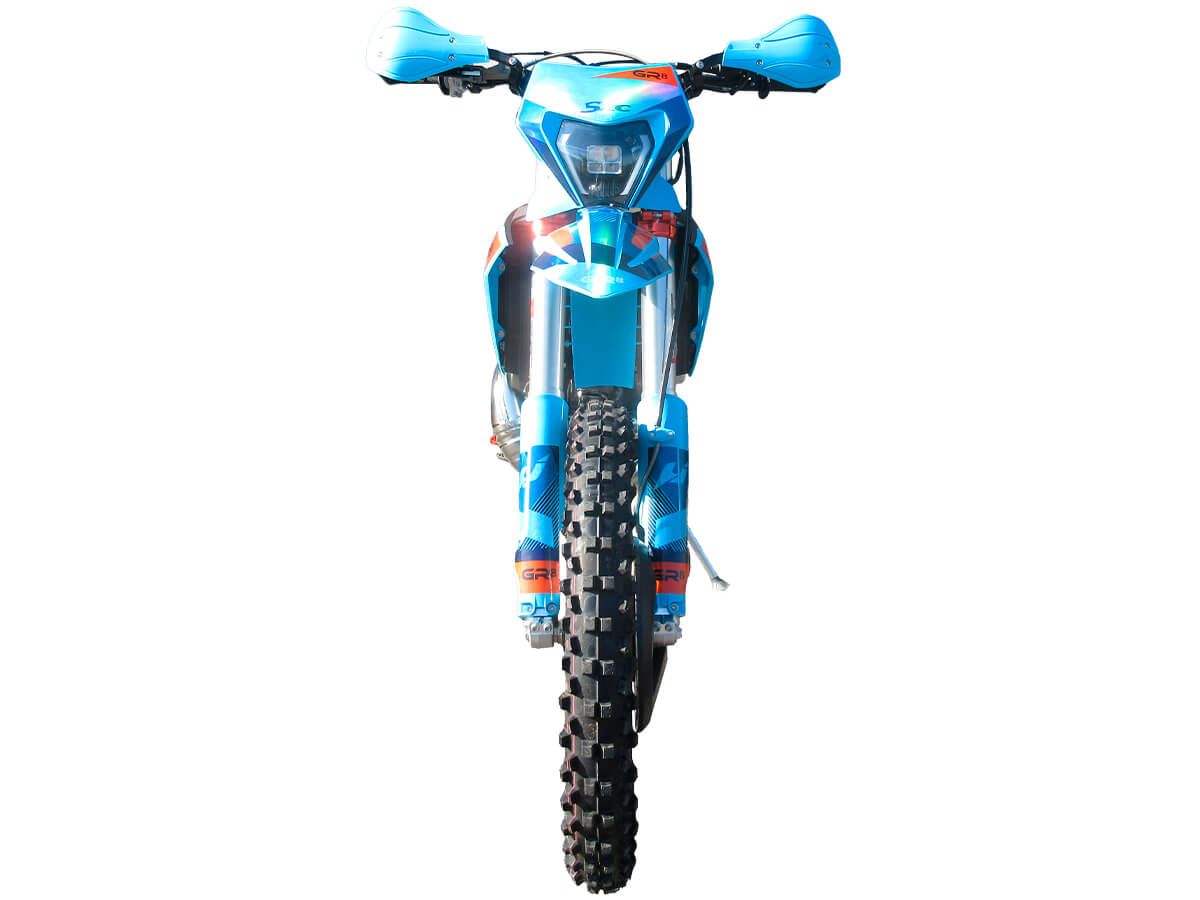 Мотоцикл GR8 T250L (2T MT-250) Enduro Optimum 2024 – надёжная и производительная эндуро модель для покорения внедорожных маршрутов. Оснащён одноцилиндровым 2-тактным двигателем LONCIN MT250 объёмом 224 см³. Обеспечивает мощность 37 л.с. За поддержание оптимальной температуры отвечает жидкостная система охлаждения. Подача топлива производится с помощью карбюратора SZC PWD 37. Он неприхотлив, повышает топливную экономность и обеспечивает надёжную работу мотоцикла. Мотоцикл оснащён 6-ступенчатой механической коробкой передач с классической схемой 1-N-2-3-4-5-6. Объём топливного бака 8 литров. GR8 F250L использует колёса диаметром 21 дюйм спереди и 18 дюймов сзади. Подвеска SZC Optima регулируется на сжатие и отбой. Спереди представлена телескопической вилкой перевёрнутого типа длиной 940 мм. Сзади используется моноамортизатор длиной 480 мм. За торможение отвечает гидравлическая дисковая система с суппортами SZC. Диаметр переднего тормозного диска 260 мм, заднего – 220 мм. Габариты мотоцикла 2200х830х1300 мм. Вес 121 кг. Колёсная база 1490 мм. Высота по седлу 930 мм. Комплектация и внешний вид мотоцикла могут отличаться в зависимости от поставки. Изображение на сайте не гарантирует наличие тех или иных опций. Уточняйте информацию при оформлении заказа. Купить мотоцикл GR8 T250L (2T MT-250) Enduro Optimum 2024 по выгодной цене можно онлайн на нашем сайте или в одном из салонов сети Роллинг Мото.