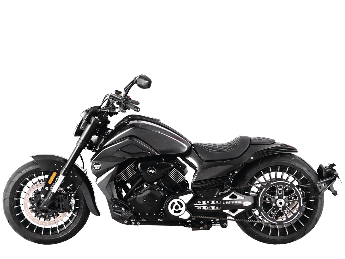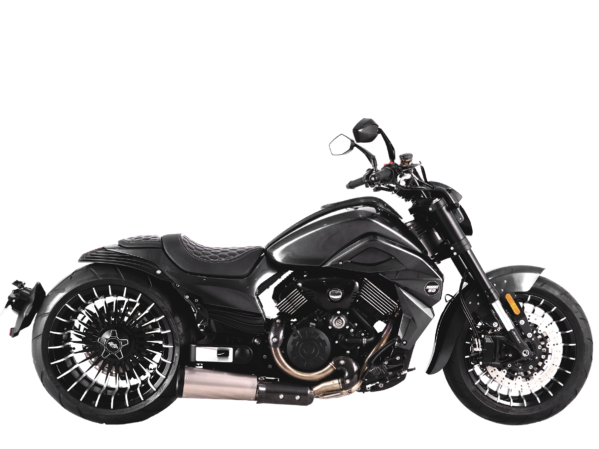 GROZA Timberwolf 800 – это не просто средство передвижения, а воплощение силы и выносливости, скрытых под привлекательным внешним видом. Сердце мотоцикла – производительный и надёжный V-образный 2-х цилиндровый 4-тактный двигатель с 4 клапанами жидкостного охлаждения. Максимальная скорость, которую может развить модель, – 160 км/ч. Механическая коробка передач имеет 6 ступеней. Ремень вариатора, произведённый компанией USA Gates, гарантирует долговечность. Топливная система представлена инжектором DELPHI. Запуск двигателя осуществляется с помощью электростартера. Передняя подвеска – перевернутая телескопическая регулируемая вилка с ходом 135 мм, задняя подвеска – пневматическая, регулировка которой осуществляется кнопками на руле или с брелока. Спереди о безопасном замедлении заботятся 2 4- поршневых суппорта с тормозными дисками 320 мм, сзади однопоршневой суппорт с плавающей скобой и тормозным диском 260 мм. Кованые алюминиевые колёса имеют размер 17х18 дюймов. На обоих колёсах есть ABS-система. Отличительная черта модели – увеличенная задняя покрышка 310 мм, которая делает вождение более устойчивым. Размеры модели 2420x890x1130 мм. Колёсная база 1650 мм. Клиренс 130 мм. Масса 288 кг. Топливный бак вмещает 22 л. Приборная панель представлена TFT-дисплеем с возможностью подключения смартфона. LED-оптика обеспечивает яркое освещение. Есть функция настройки сиденья по высоте – от 650 мм до 700 мм. GROZA Timberwolf 800 – сочетание потрясающей динамики, плавной подвески и брутального облика. Комплектация и внешний вид мотоцикла могут отличаться в зависимости от поставки. Изображение на сайте не гарантирует наличия тех или иных опций. Уточняйте информацию при оформлении заказа. Купить мотоцикл GROZA Timberwolf 800 по выгодной цене можно онлайн на нашем сайте или в одном из салонов сети Роллинг Мото.