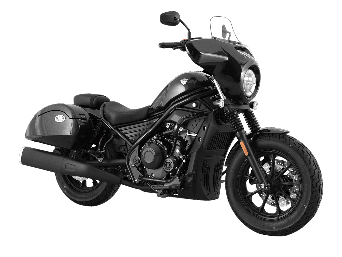 GROZA Traveller 525 – сбалансированный круизёр для динамичного туризма. Чёрный цвет, острый профиль обтекателей и хромированные элементы придают модели солидности, а круглая фара олдскульности. Интегрированные съёмные кофры с обеих сторон, сиденья с комфортной посадкой и лобовая защита от ветра подчёркивают туристический облик и делают акцент на функциональности класса. Компактные габариты 2213х828х1230 мм делают его лёгким в управлении и манёвренным для езды по городу. При этом он всегда готов к спонтанной длительной поездке. Ёмкость бака на 14 литров позволит забыть о дозаправке на протяжении сотен километров. В основе модели 2-цилиндровый 4-тактный мотор с 4 клапанами на каждый цилиндр объёмом 494 см³, который выдаёт мощность 54 л.с. при 8500 об/мин. Крутящий момент 50,5 Н·м достигается при 7000 об/мин. Двигатель способен разогнаться до 160 км/ч. Оптимальную температуру двигателя во время движения будет поддерживать жидкостная система охлаждения. Механическая коробка передач имеет 6 ступеней и схему 1-N-2-3-4-5-6. На мотоцикл установлены колёса диаметром 16 дюймов. Классическая телескопическая вилка спереди и 2 пружинных амортизатора с регулировками преднатяга сзади берут на себя неровности рельефных маршрутов. За безопасное замедление отвечают система ABS и гидравлические дисковые тормоза – спереди установлен 4-поршневой суппорт и диск диаметром 300 мм, сзади – однопоршневой суппорт с плавающей скобой и диском 260 мм. Для освещения используется яркая LED-оптика. Приборная панель представлена TFT-дисплеем с USB-доступом. Также в комплектацию входят двойная аудиосистема и защитные дуги в передней части. GROZA Traveller 525 – золотая середина для тех, кто ищет мотоцикл на каждый день с возможностью неожиданных путешествий. Комплектация и внешний вид мотоцикла могут отличаться в зависимости от поставки. Изображение на сайте не гарантирует наличие тех или иных опций. Уточняйте информацию при оформлении заказа. Купить мотоцикл GROZA Traveller 525 по выгодной цене можно, оформив онлайн-заказ на нашем сайте.