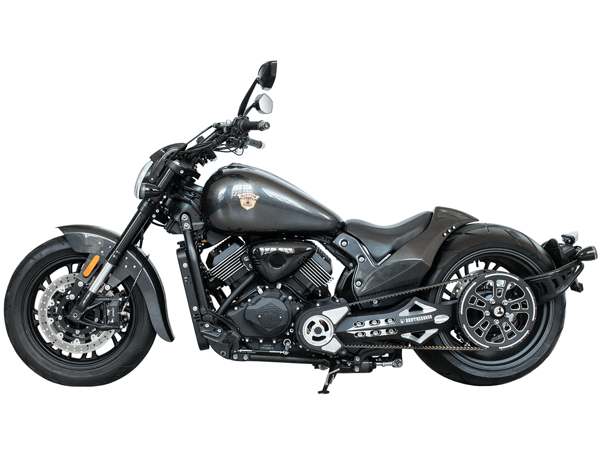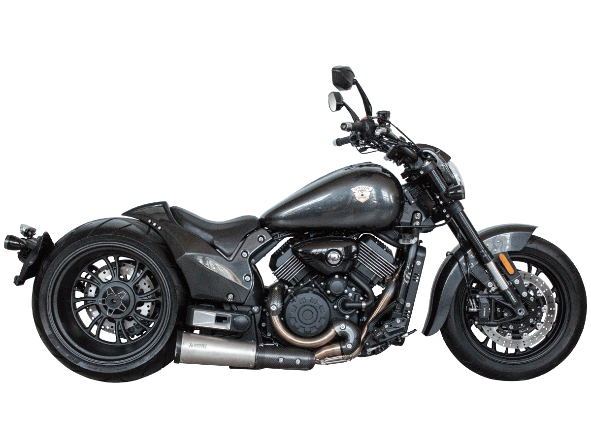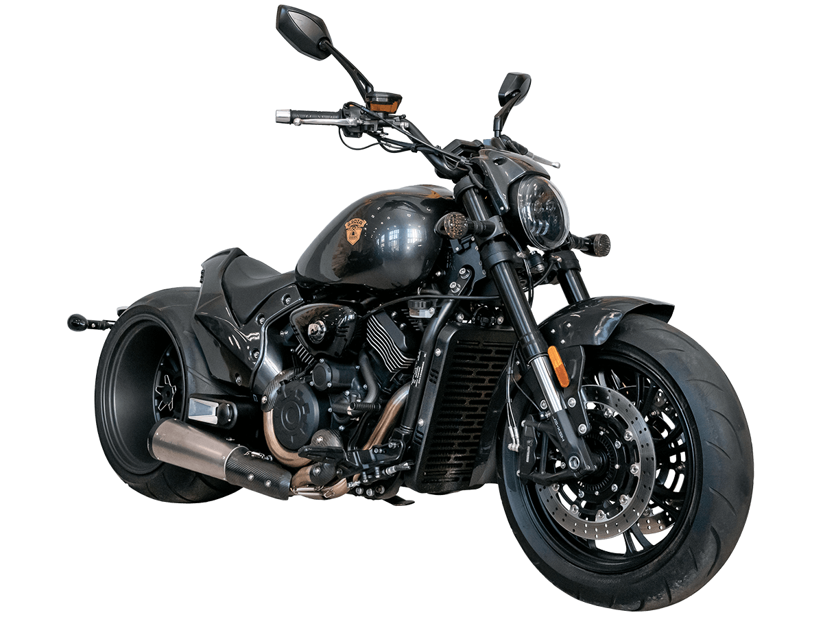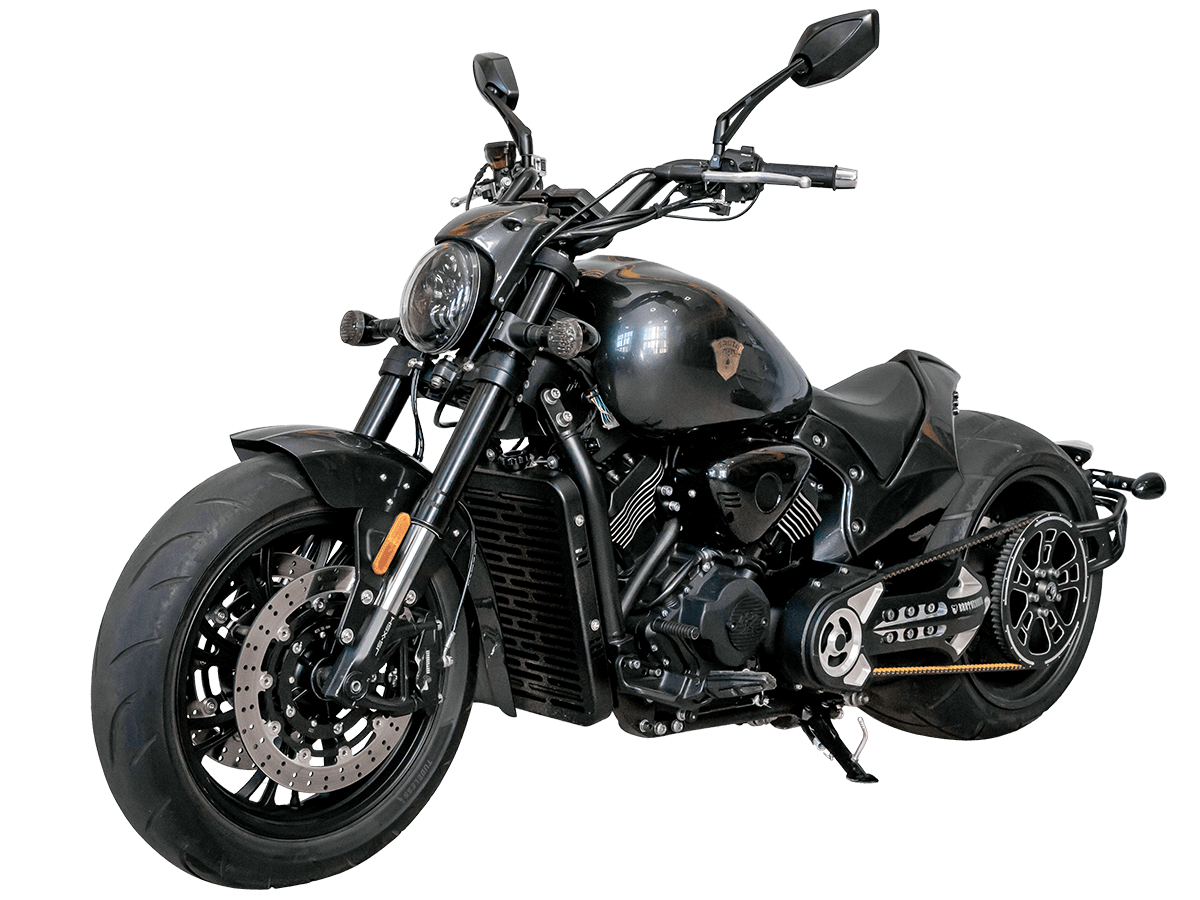 GROZA Wolverine 800 – ультимативный круизёр, который будто бы сошёл со страниц эксклюзивного каталога кастом-байков. Модель названа в честь росомахи – одного из самых свирепых, ловких и бескомпромиссных хищников в животном мире. Пилотируя этот байк, вы не имеете шанса остаться в потоке незамеченным. А в случае, если кто-то на светофоре решит посостязаться в дрэг-рейсинге, 800-кубовый V-твин и гигантская задняя покрышка не оставят преследователям никаких шансов. Двухцилиндровый V-образный четырёхтактный двигатель объёмом 800 см 3 мощностью 61 л.с. при высоких показателях динамики и отличном крутящем моменте способен разгонять аппарат до 180 км/ч. Инжекторный впрыск топлива с инжектором DELPHI увеличивает топливную экономичность, а также позволяет добиться высокой приёмистости и неприхотливости агрегата. Привод на ведущее колесо осуществляется ремнём знаменитой марки USA Gates. Жидкостная система охлаждения не допустит перегрева мотора даже при самом агрессивном вождении. Радиатор оснащён фирменными вентиляторами Panasonic, способными обеспечить сильный отвод тепла даже на перегруженных городских дорогах. Металлическая крышка на радиаторе эффективно защищает от ударов твёрдых предметов. Аппарат имеет 6-ступенчатую механическую коробку передач с классической схемой “1-N-2-3-4-5-6”. На мотоцикл установлены литые алюминиевые диски диаметром 17 дюймов спереди и 18 дюймов сзади. Ширина передней покрышки – 140 мм, а задней – рекордные 360 мм! С неровностями дороги эффективно справляются телескопическая вилка перевёрнутого типа спереди и маятник с двумя газонаполненными амортизаторами сзади. Подвеска имеет 7 ступеней регулировки, что обеспечивает лёгкую перестройку на различные режимы езды. Для всего класса круизёров такая опция – большая редкость. Эффективное и безопасное замедление с любых скоростей обеспечивают гидравлические дисковые тормоза спереди и сзади от компании NISSIN. Мотоцикл оснащён ультраминималистичным хвостовым обтекателем и изумительным “ракетным” глушителем с углепластиковыми щитками для защиты ноги, произведённым легендарной фирмой AKRAPOVIC. Wolverine 800 сочетает в себе отличные технические характеристики, богатое оснащение, комфорт и надёжность, что позволяет вам ощутить настоящую свободу на любой дороге. Комплектация и внешний вид мотоцикла могут отличаться в зависимости от поставки. Изображение на сайте не гарантирует наличие тех или иных опций. Уточняйте информацию при оформлении заказа. Купить мотоцикл GROZA Wolverine 800 по выгодной цене можно, оформив онлайн-заказ на нашем сайте.