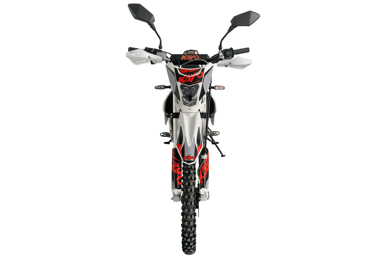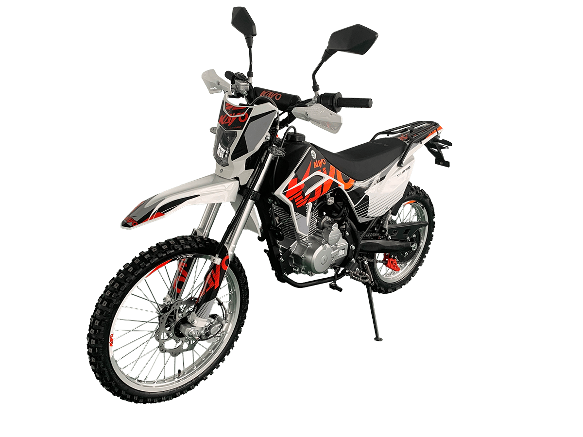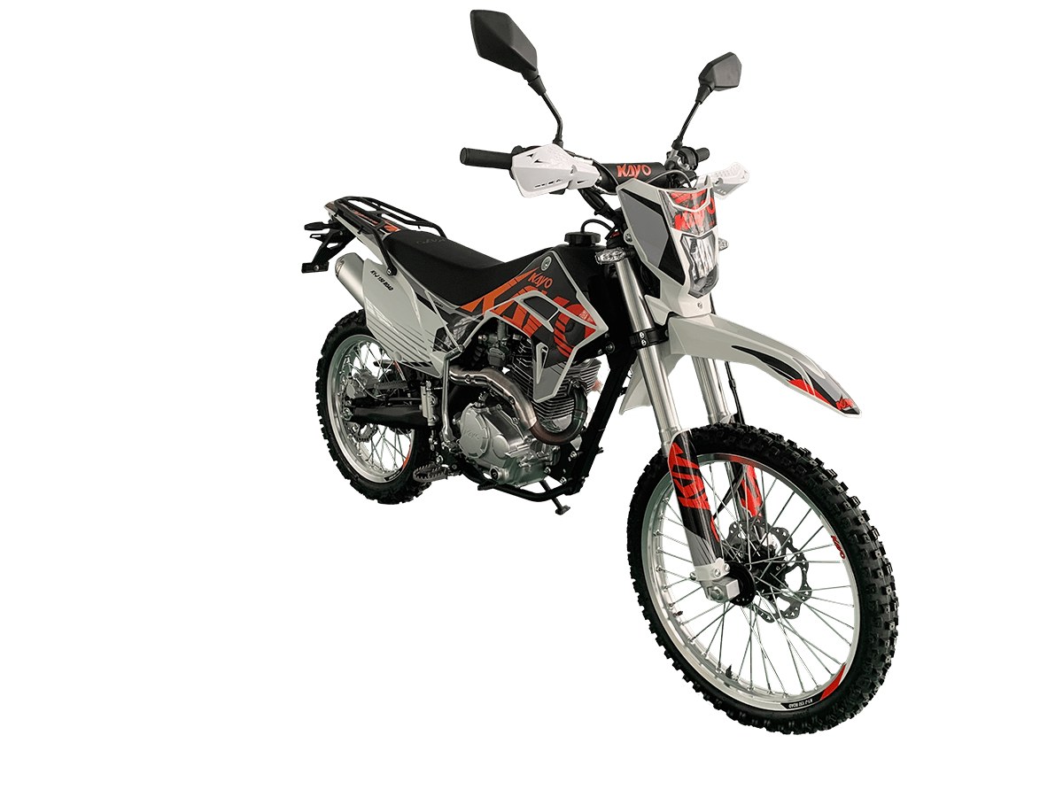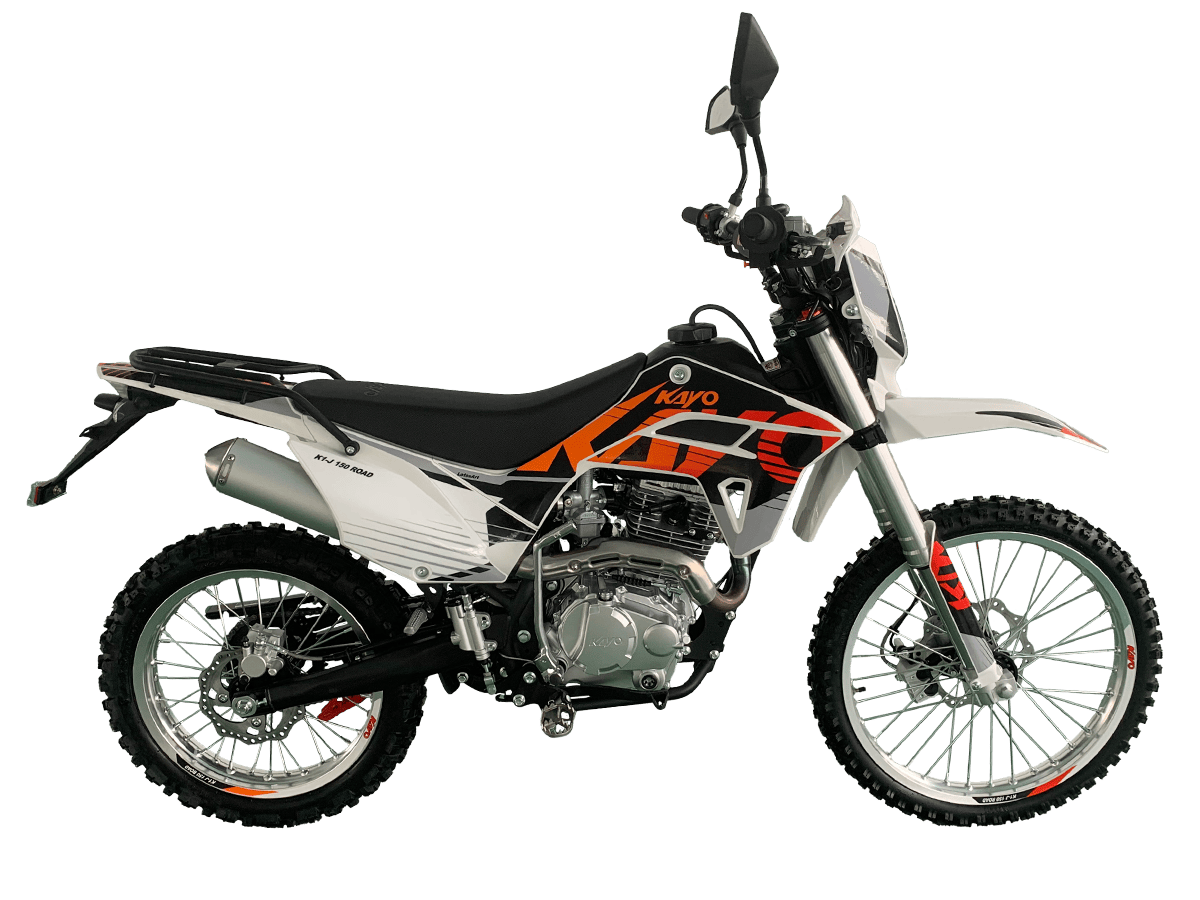 KAYO K1-J 150 ROAD (CB150) 19/16 (2025 г.) ПТС – мотоцикл, который создан для тех, кто готов покорять внедорожные трассы. 4-тактный мотор с воздушным охлаждением и одним верхним распределительным валом (SOHC) сочетает надёжность и отличную динамику. Объём двигателя составляет 144,6 см³. Он обеспечивает мощность в 12 л.с. при 8500 об/мин и максимальный крутящий момент 10 Н·м при 6500 об/мин. Степень сжатия 9,2:1, диаметр и ход поршня – 65,5 x 49,5 мм. Всё это работает в паре с карбюратором PE24, который гарантирует стабильную работу двигателя. Система запуска универсальная: электростартер и кикстартер, чтобы вы всегда были готовы к поездке. Тип зажигания CDI. Коробка передач механическая с 5 ступенями. Привод цепной. Топливный бак на 6 литров. Мотоцикл оснащён нерегулируемой передней 735 мм вилкой и задним 360 мм амортизатором. Задний маятник и прогрессия стальные. Траверсы выполнены из литого алюминия. Колёса размером 19 дюймов спереди и 16 дюймов сзади. Алюминиевые обода, ступицы и буксаторы. Для уверенной остановки предусмотрены гидравлические дисковые тормоза спереди и сзади. Габариты 1850×760×1060 мм и сухая масса всего 95 кг. Колёсная база 1250 мм. Дорожный просвет 250 мм, высота по седлу 790 мм. На KAYO K1-J 150 ROAD можно выезжать на дороги общего пользования благодаря наличию ПТС, цифровой приборной панели, звукового сигнала, зеркал заднего вида и необходимого набора светотехники. Имеются стальные подножки для поездок с пассажиром и задняя багажная платформа. Пластиковая защита рычагов. Купить мотоцикл KAYO K1-J 150 ROAD (CB150) 19/16 (2025 г.) ПТС по привлекательной цене можно онлайн на нашем сайте или в одном из салонов сети Роллинг Мото.