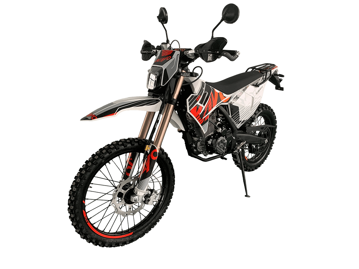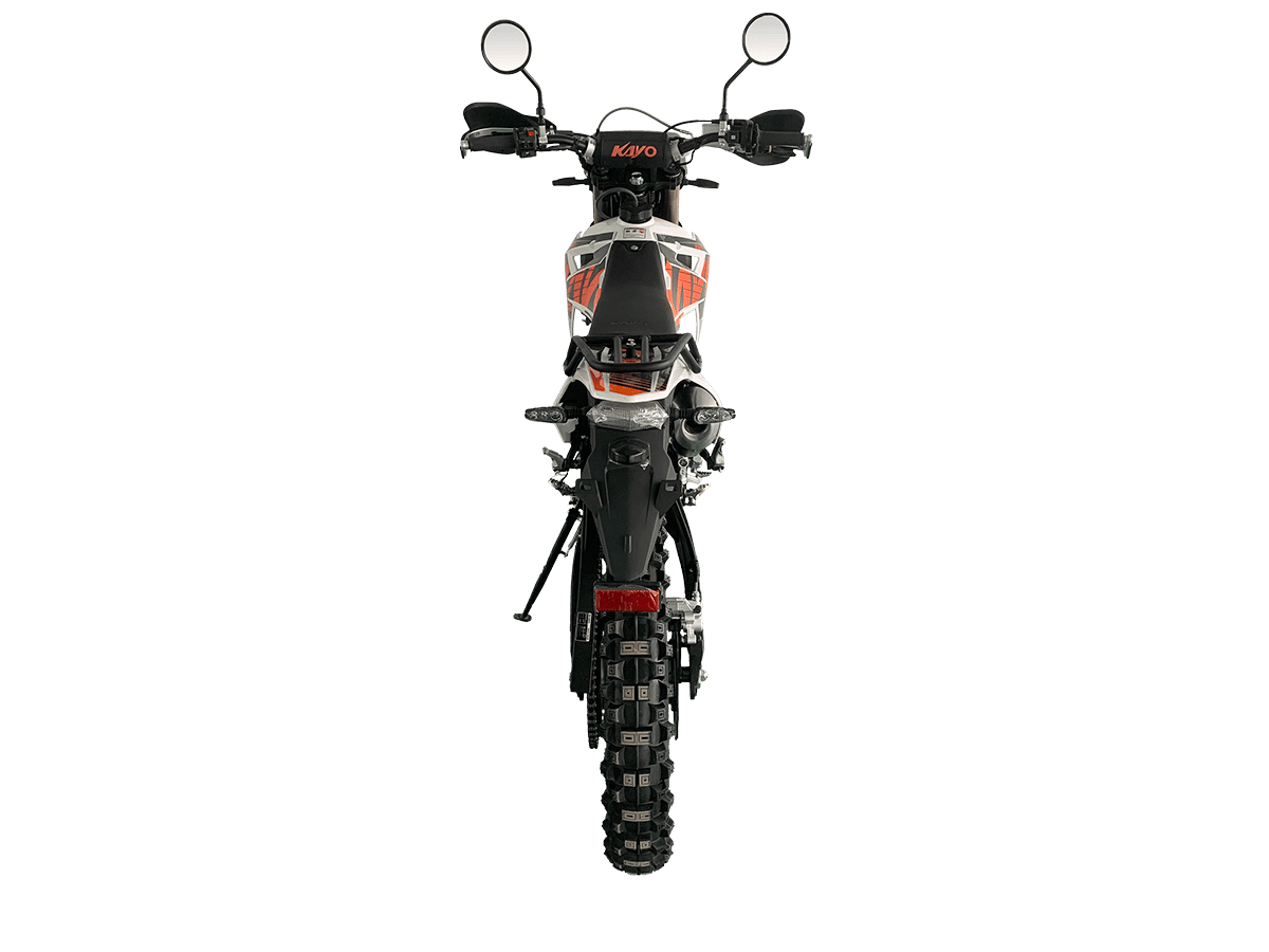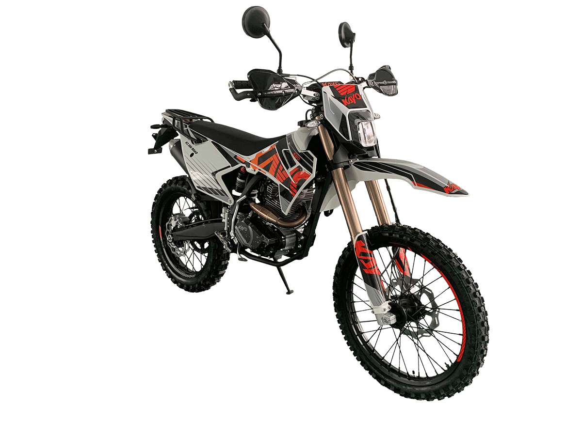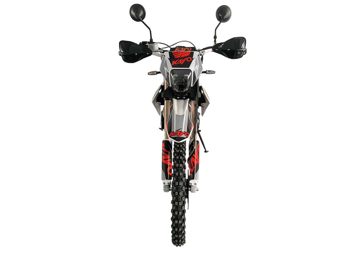Мотоцикл KAYO K3 300 Road 21/18 2025 – модель нового прорывного эндуро, модернизированная для поездок по дорогам общего пользования. Модель Road имеет ПТС и всё необходимое снаряжение: приборная панель, указатели поворота, стоп-сигнал, звуковой сигнал, зеркала заднего вида. Для перевозки грузов установлена задняя багажная платформа, а для поездок с пассажиром имеется дополнительная пара подножек. Мотоцикл оснащён одноцилиндровым 4-тактным двигателем ZONGSHEN PR300/ZS175FMM-5 объёмом 271,3 см³ с балансирным валом и воздушным типом охлаждения. Максимальная мощность в 21,75 л.с. достигается при 8500 об/мин, а максимальный крутящий момент 22 Нм при 6500 об/мин. Соотношение диаметра и хода поршня 75,0х61,4. Степень сжатия 9,29:1. Карбюратор NIBBI PE30 обеспечивает топливную экономность и бесперебойную работу в самых сложных заездах. На мотоцикле установлена 5-ступенчатая коробка передач и цепной привод. Запуск двигателя осуществляется с помочью электростартера или кикстартера. Объём топливного бака 10 литров. Спицованные колёса с алюминиевыми ободами имеют диаметр 21 дюйм спереди и 18 сзади. Для подвески спереди используется телескопическая вилка перевёрнутого типа длиной 830 мм, а сзади установлен моноамортизатор длиной 450 мм. Оба компонента регулируются. На мотоцикле установлены гидравлические дисковые тормоза с 2-поршневой системой спереди и однопоршневой сзади. Мотоцикл готов к самым суровым вызовам бездорожья. Удобное расположение фильтр-бокса позволяет легко обслуживать его после заездов. Руль оснащён алюминиевой защитой рук с высокими пластиковыми накладками. На мотоцикле используются ручки-«неломайки» с регулировкой положения рычага и короткоходная ручка газа. Габариты 2100х810х1180 мм, вес 109 кг. Клиренс 340 мм, колёсная база 1390 мм, высота по седлу 900 мм. Купить мотоцикл KAYO K3 300 Road 21/18 2025 по привлекательной цене можно онлайн на нашем сайте или в одном из салонов сети Роллинг Мото.