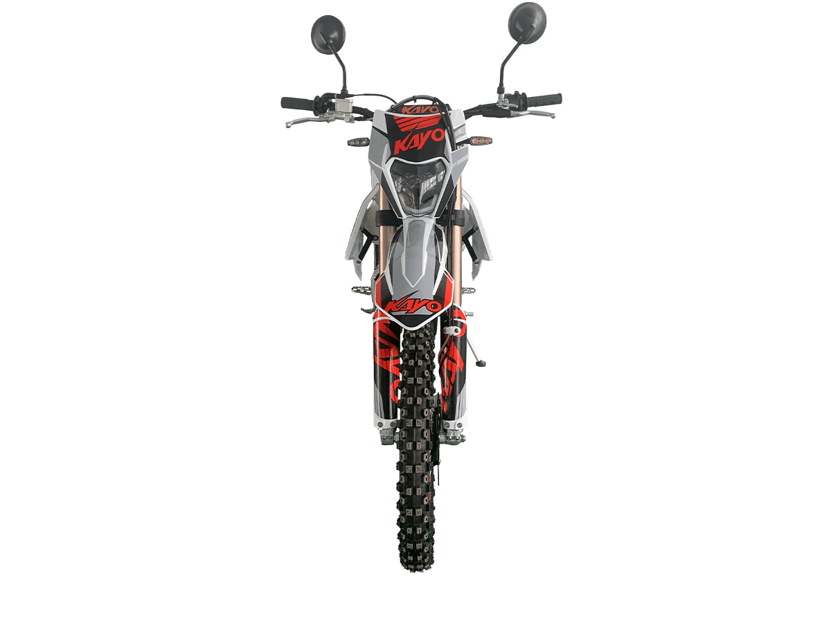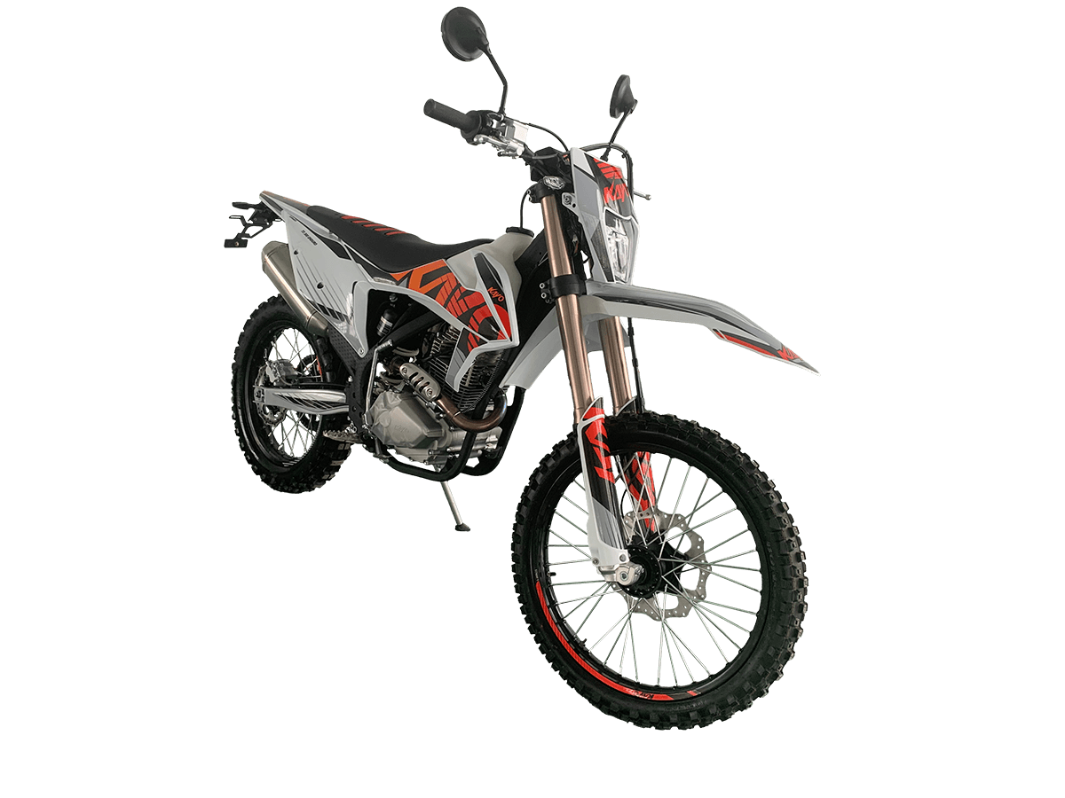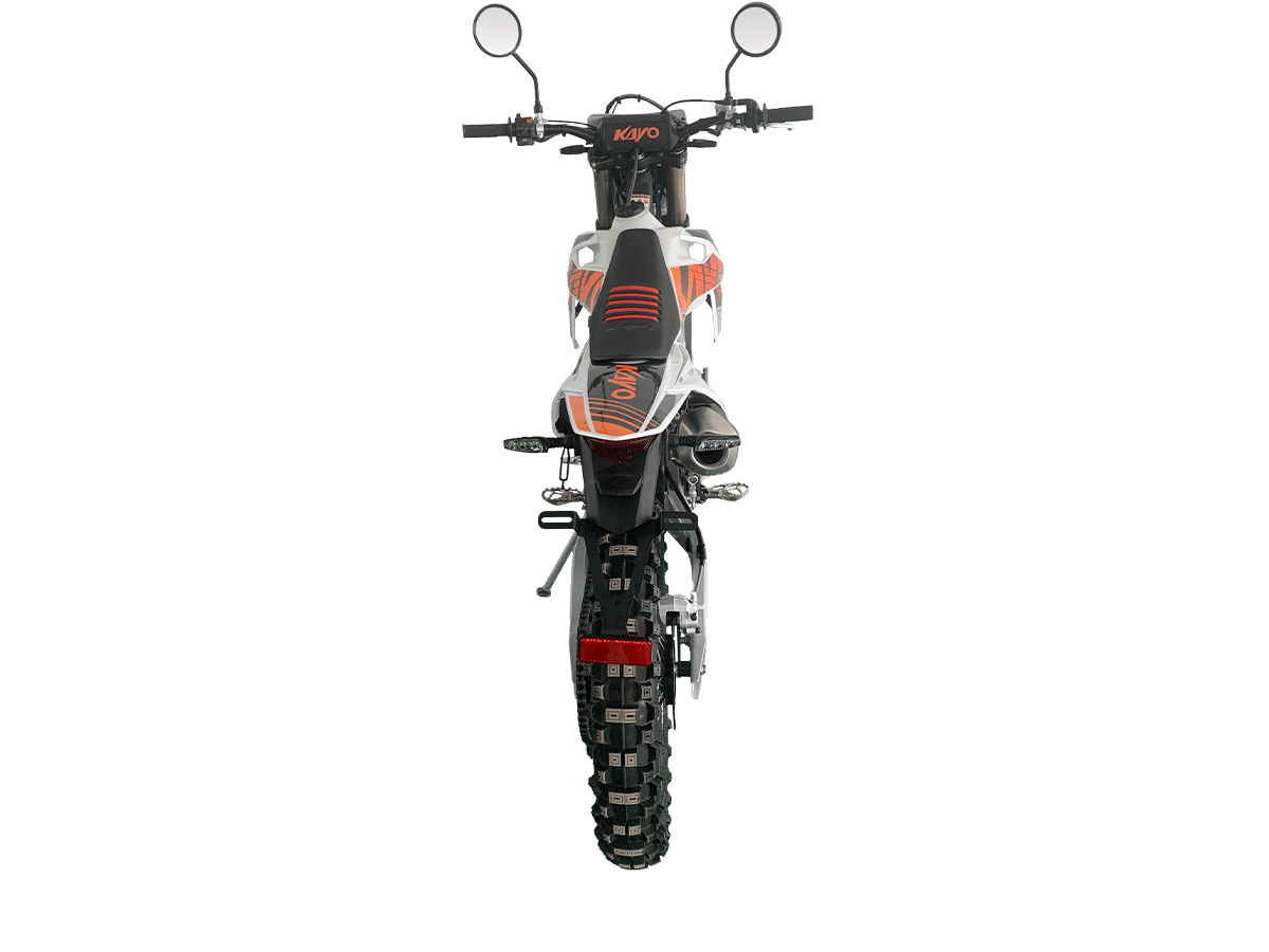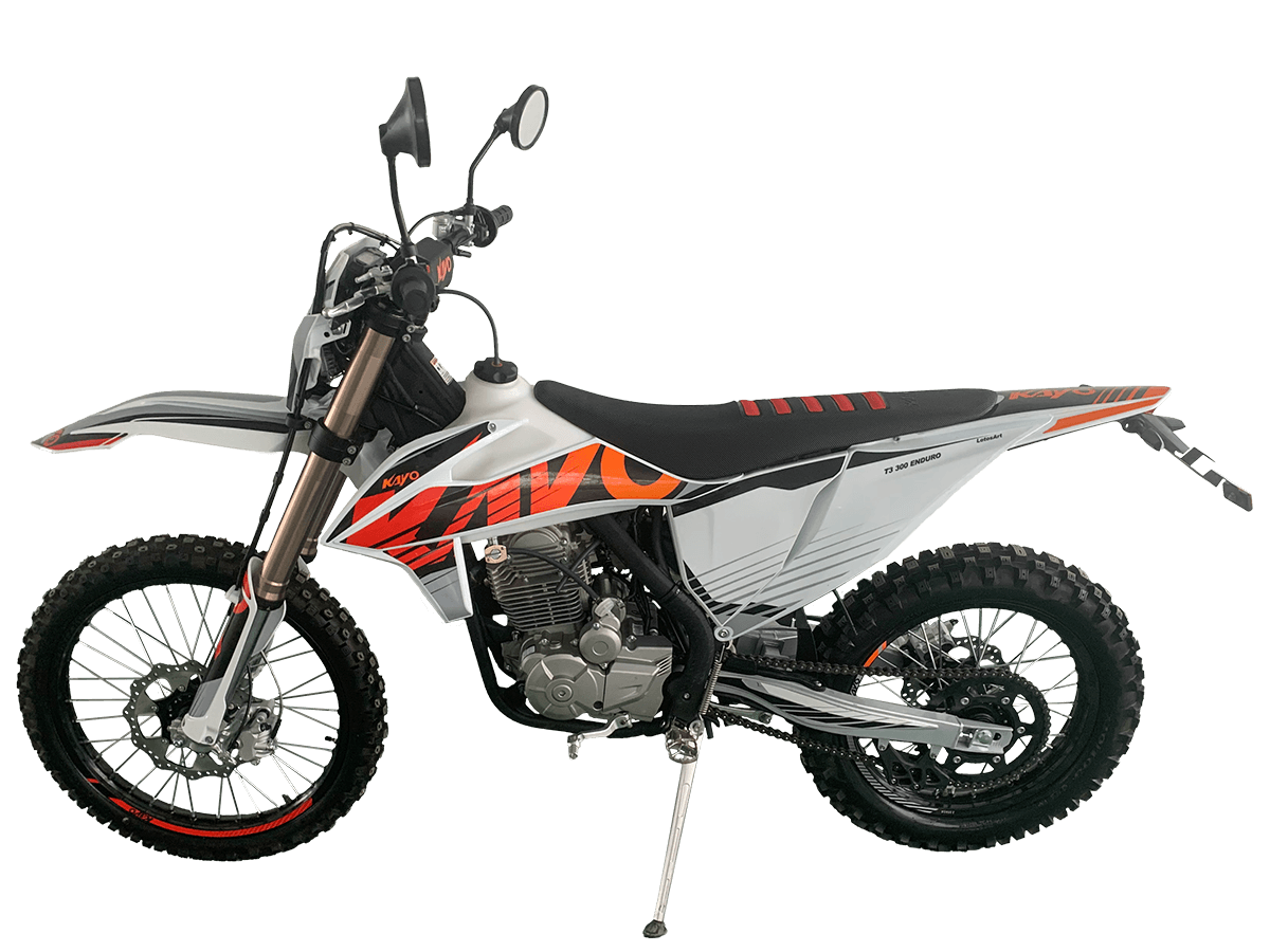 Мотоцикл KAYO T3 300 Enduro 21/18 2025 ПТС – надёжный и производительный эндуро, готовый отправиться по самым сложным маршрутам. Оснащён 4-тактным двигателем объёмом 271,3 см³ с верхним распредвалом и воздушным типом охлаждения. Максимальная мощность в 21,75 л.с. развивает при 8500 об/мин, а максимальный крутящий момент 22 Нм при 6500 об/мин. За подачу топлива отвечает карбюратор PE30. Он обеспечивает топливную экономность и бесперебойную работу двигателя даже в самых жёстких условиях. Соотношение диаметра цилиндра и хода поршня 75,0х61,4. Степень сжатия 9,29:1. Запуск двигателя осуществляется с помощью электростартера или кикстартера. Тип зажигания CDI. Механическая коробка передач имеет 5 ступеней. Привод цепной. Объём топливного бака 8 литров. На мотоцикл установлены спицованные колёса диаметром 21 дюйм спереди и 18 дюймов сзади. Длина подвески спереди 940 мм, длина задней подвески 450 мм. За торможение отвечают дисковые гидравлические тормоза. На мотоцикл установлены спицованные колёса с алюминиевыми ободами, ступицами и стальными буксаторами. Диаметр колёс 21 дюйм спереди и 18 дюймов сзади. За амортизацию отвечает подвеска со стальной прогрессией. Длина передней подвески 940 мм, длина задней подвески 450 мм. Траверсы и задний маятник выполнены из литого алюминия. Мотоцикл имеет ПТС и оснащён всем необходимым для поездок по дорогам общего пользования: диодной светотехникой, звуковым сигналом, цифровой приборной панелью, зеркалами заднего вида. Светотехника представлена яркой фарой для поездок в тёмное время суток, поворотниками, стоп-сигналом. Руль Fatbar выполнен из литого алюминия. Имеются дополнительные подножки для поездок с пассажиром. Габариты мотоцикла 2120х810х1260 мм, вес 119 кг. Клиренс 340 мм, колёсная база 1470 мм, высота по седлу 940 мм. Купить мотоцикл KAYO T3 300 Enduro 21/18 2025 ПТС по привлекательной цене можно онлайн на нашем сайте или в одном из салонов сети Роллинг Мото.