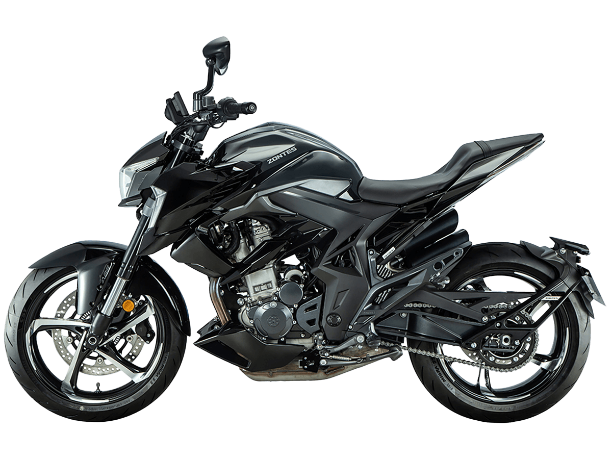 Мотоцикл ZONTES ZT350-R – современный нейкед со стремительным и дерзким дизайном. Хорошо подходит как для поездок в городской среде и маневрирования в межрядье. Силовая установка представлена одноцилиндровым 4-тактным двигателем ZT184MP с 4 клапанами и 2 верхними распредвалами. Двигатель имеет объём 348 см³ и обеспечивает мощность в 39 л.с. Оснащён инжектором BOSCH и системой жидкостного охлаждения. Механическая коробка передач имеет 6 ступеней и схему 1-N-2-3-4-5-6. Запуск двигателя осуществляется с помощью бесключевого доступа. Ёмкость топливного бака 15 литров. Колёса представлены литыми алюминиевыми дисками диаметром 17 дюймов. На мотоцикл установлены датчики давления в шинах, показатели от которых выводятся на приборную панель. Для подвески спереди используется телескопическая вилка, сзади – моноамортизатор. Гидравлические дисковые тормоза произведены испанской компанией J.JUAN, входящей в холдинг BREMBO. Для освещения используется яркая LED-оптика, а приборная панель представлена цифровым дисплеем. Имеется 2 USB-порта. Габариты мотоцикла 2030х795х1120 мм. Колёсная база 1390 мм. Высота по седлу 795 мм. Вес 165 кг. Комплектация и внешний вид мотоцикла могут отличаться в зависимости от поставки. Изображение на сайте не гарантирует наличие тех или иных опций. Уточняйте информацию при оформлении заказа. Купить мотоцикл ZONTES ZT350-R по выгодной цене можно онлайн на нашем сайте или в одном из салонов сети Роллинг Мото.