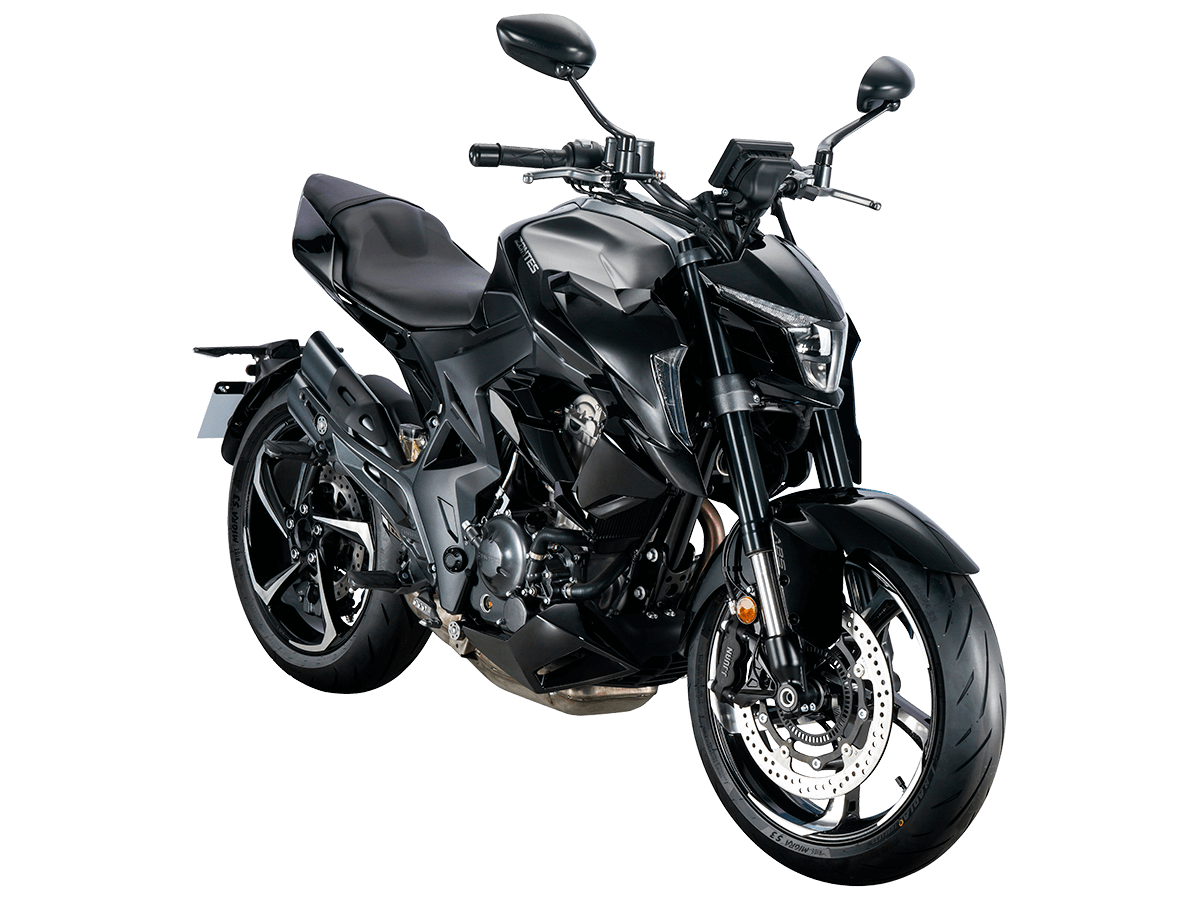 Мотоцикл ZONTES ZT350-R1 – современный нейкед со стремительным и дерзким дизайном. Хорошо подходит как для поездок в городской среде и маневрирования в межрядье. Силовая установка представлена одноцилиндровым 4-тактным двигателем ZT184MP с 4 клапанами и 2 верхними распредвалами. Двигатель имеет объём 348 см³ и обеспечивает мощность в 39 л.с. Оснащён инжектором BOSCH и системой жидкостного охлаждения. Механическая коробка передач имеет 6 ступеней и схему 1-N-2-3-4-5-6. Запуск двигателя осуществляется с помощью бесключевого доступа. Ёмкость топливного бака 15 литров. Колёса представлены литыми алюминиевыми дисками диаметром 17 дюймов. На мотоцикл установлены датчики давления в шинах, показатели от которых выводятся на приборную панель. Для подвески спереди используется телескопическая вилка, сзади – моноамортизатор. Гидравлические дисковые тормоза произведены испанской компанией J.JUAN, входящей в холдинг BREMBO. Для освещения используется яркая LED-оптика, а приборная панель представлена цифровым дисплеем. Рычаги тормоза, сцепления и лапки КПП можно отрегулировать. Имеется 2 USB-порта. Габариты мотоцикла 2030х795х1120 мм. Колёсная база 1390 мм. Высота по седлу 795 мм. Вес 165 кг. Комплектация и внешний вид мотоцикла могут отличаться в зависимости от поставки. Изображение на сайте не гарантирует наличие тех или иных опций. Уточняйте информацию при оформлении заказа. Купить мотоцикл ZONTES ZT350-R1 по выгодной цене можно онлайн на нашем сайте или в одном из салонов сети Роллинг Мото.