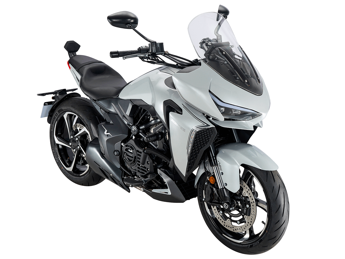 Мотоцикл ZONTES ZT350-VX – дерзкий круизёр с современным дизайном и классической геометрией. Хорошо подходит как для повседневных поездок по городу, так и для покорения дальних маршрутов. Силовая установка представлена одноцилиндровым 4-тактным двигателем ZT184MP с 4 клапанами и 2 верхними распредвалами. Двигатель имеет объём 348 см³ и обеспечивает мощность в 39 л.с. Оснащён инжектором BOSCH и системой жидкостного охлаждения. Механическая коробка передач имеет 6 ступеней и схему 1-N-2-3-4-5-6. Запуск двигателя осуществляется с помощью бесключевого доступа. Ёмкость топливного бака 15 литров. Колёса представлены литыми алюминиевыми дисками диаметром 17 дюймов. На мотоцикл установлены датчики давления в шинах, показатели от которых выводятся на приборную панель. Для подвески спереди используется телескопическая вилка, сзади – моноамортизатор. Гидравлические дисковые тормоза произведены испанской компанией J.JUAN, входящей в холдинг BREMBO. Для освещения используется яркая LED-оптика, а приборная панель представлена цифровым дисплеем. Рычаги тормоза, сцепления и лапки КПП можно отрегулировать. Имеется 2 USB-порта. Габариты мотоцикла 2080х860х1150 мм. Колёсная база 1430 мм. Высота по седлу 765 мм. Вес 176 кг. Комплектация и внешний вид мотоцикла могут отличаться в зависимости от поставки. Изображение на сайте не гарантирует наличие тех или иных опций. Уточняйте информацию при оформлении заказа. Купить мотоцикл ZONTES ZT350-VX по выгодной цене можно онлайн на нашем сайте или в одном из салонов сети Роллинг Мото.