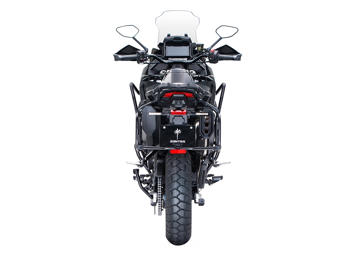 Мотоцикл ZONTES ZT703-F Tour 19/17 2025 – универсальный турэндуро, который подойдёт как для городских поездок, так и динамичных прохватов по грунту благодаря производительной подвеске. Узнайте, что такое настоящее наслаждение путешествием! Силовая установка представлена 3-цилиндровым 4-тактным двигателем объёмом 699 см³ с 4 клапанами на каждом цилиндре и 2 верхними распредвалами. Двигатель способен развивать мощность до 97,2 л.с. при 10 000 об/мин и высокий крутящий момент 76 Н·м при 7500 об/мин, что позволяет развивать большую скорость и с лёгкостью преодолевать трассы со сложным рельефом. Соотношение диаметра цилиндра и хода поршня 70х60,6 мм. Степень сжатия 13:1. Может работать в 2 режимах: ECO и SPORT. Запуск двигателя осуществляется с помощью бесключевого доступа. Установлена алюминиевая защита. Жидкостная система охлаждения эффективно поддерживает оптимальную температуру двигателя. На мотоцикл установлена 6-ступенчатая коробка передач, оснащённая квик-шифтером для переключения передач без использования рычага сцепления. В конструкции мотоцикла используется пространственная алюминиевая рама. Спереди и по бокам картера установлена металлическая защита двигателя. Выхлопная система оснащена стильным глушителем. Ёмкость топливного бака 22 литра. На мотоцикл установлены спицованные бескамерные колёса диаметром 19 дюймов спереди и 17 дюймов сзади. Подвеска изготовлена итальянским производителем MARZOCCHI. Спереди используется телескопическая вилка перевёрнутого типа с ходом 180 мм. Сзади установлен моноамортизатор с ходом 180 мм. Оба компонента регулируются. Дисковые гидравлические тормоза произведены компанией J.JUAN, входящей в холдинг BREMBO. Спереди используется двойной диск 310 мм с 4-поршневыми суппортами, а на заднем колесе расположен диск 260 мм с однопоршневым суппортом. Мотоцикл также оснащён 2-канальной ABS-системой с возможностью отключения, а также настраиваемой противобуксовочной системой. На мотоцикле используется яркая LED-оптика с дополнительным светом и многофункциональная приборная TFT-панель, положение которой можно регулировать. Рычаги тормоза и сцепления можно регулировать. Руль оснащён функцией подогрева и защитой рук. Спереди и сзади установлены видеорегистраторы. Мотоцикл оснащён датчиками давления в шинах. Ветровое стекло имеет электронную регулировку и настраивается через кнопки на руле. Имеется 2 USB-порта. Вещи можно перевозить в багажном отсеке, или присоединить кофры для перевозки: имеется площадка для установки центрального кофра и крепления для боковых кофров. Мотоцикл поставляется с центральной подножкой в комплекте. Габариты мотоцикла 2355x940x1395 мм. Колёсная база 1550 мм. Высота по седлу 810 мм. Вес 228 кг. Комплектация и внешний вид мотоцикла могут отличаться в зависимости от поставки. Изображение на сайте не гарантирует наличие тех или иных опций. Уточняйте информацию при оформлении заказа. ZONTES 703-F проверен на трассе «Золота Кагана» в Астраханской пустыне. Купить мотоцикл ZONTES ZT703-F Tour 19/17 2025 по выгодной цене можно онлайн на нашем сайте или в одном из салонов сети Роллинг Мото.