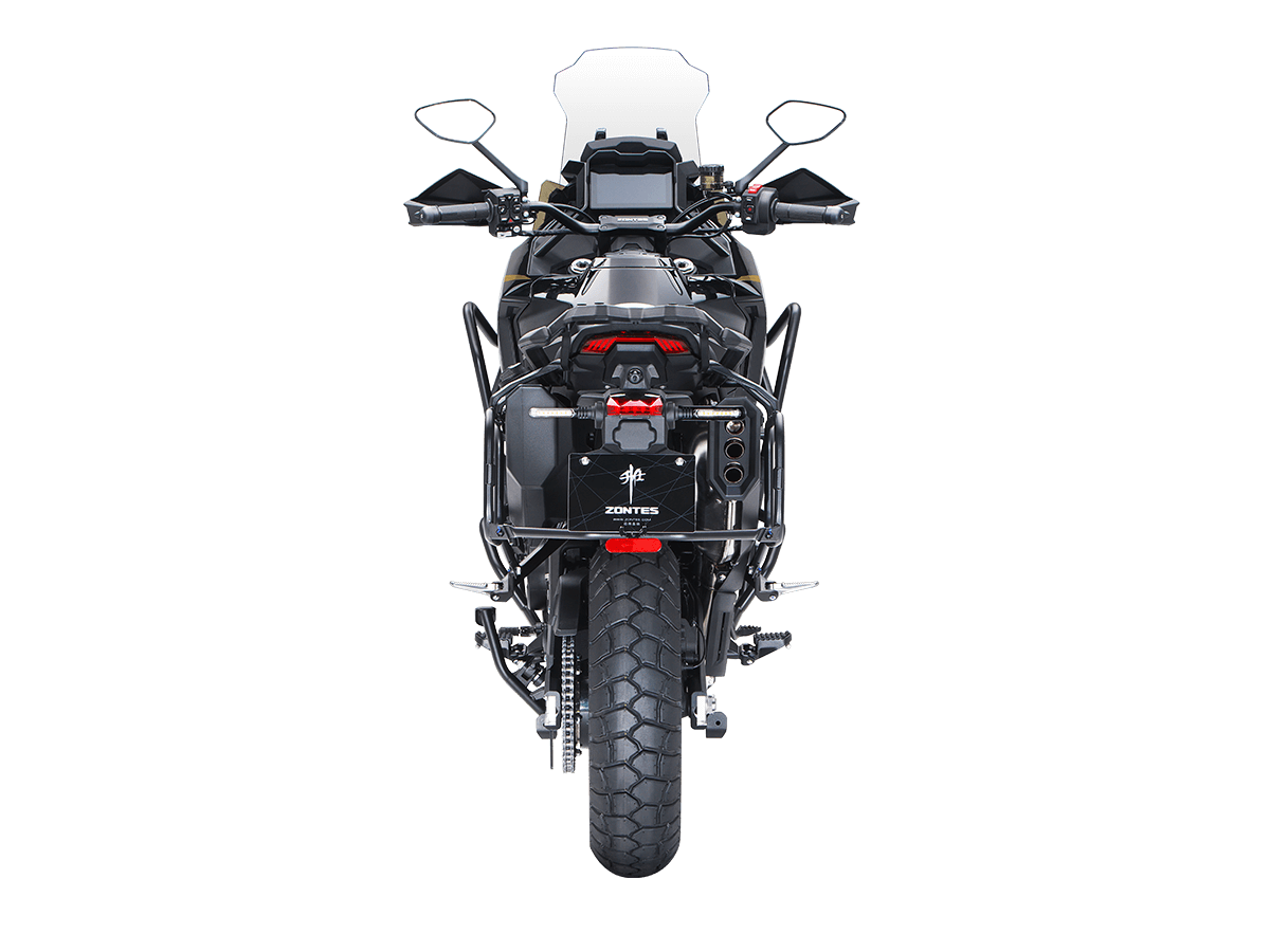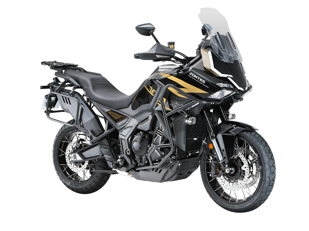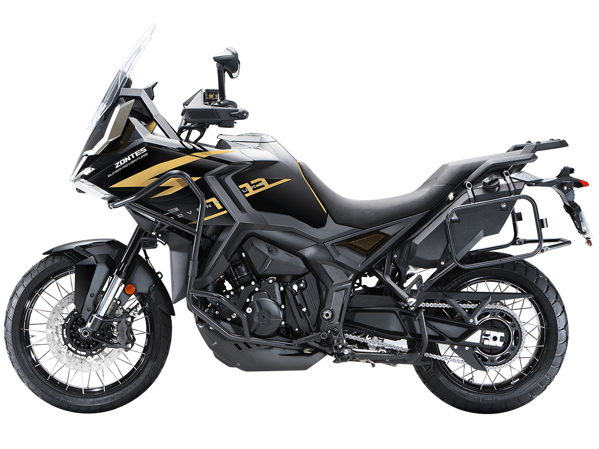 Мотоцикл ZONTES ZT703-F Tour 21/18 2025 – универсальный турэндуро, который подойдёт как для городских поездок, так и динамичных прохватов по грунту благодаря производительной подвеске. Узнайте, что такое настоящее наслаждение путешествием! Силовая установка представлена 3-цилиндровым 4-тактным двигателем объёмом 699 см³ с 4 клапанами на каждом цилиндре и 2 верхними распредвалами. Двигатель способен развивать мощность до 97,2 л.с. при 10 000 об/мин и высокий крутящий момент 76 Н·м при 7500 об/мин, что позволяет развивать большую скорость и с лёгкостью преодолевать трассы со сложным рельефом. Соотношение диаметра цилиндра и хода поршня 70х60,6 мм. Степень сжатия 13:1. Может работать в 2 режимах: ECO и SPORT. Запуск двигателя осуществляется с помощью бесключевого доступа. Установлена алюминиевая защита. Жидкостная система охлаждения эффективно поддерживает оптимальную температуру двигателя. На мотоцикл установлена 6-ступенчатая коробка передач, оснащённая квик-шифтером для переключения передач без использования рычага сцепления. В конструкции мотоцикла используется пространственная алюминиевая рама. Спереди и по бокам картера установлена металлическая защита двигателя. Выхлопная система оснащена стильным глушителем. Ёмкость топливного бака 22 литра. На мотоцикл установлены спицованные бескамерные колёса диаметром 21 дюйм спереди и 18 дюймов сзади. Подвеска изготовлена итальянским производителем MARZOCCHI. Спереди используется телескопическая вилка перевёрнутого типа с ходом 180 мм. Сзади установлен моноамортизатор с ходом 180 мм. Оба компонента регулируются. Дисковые гидравлические тормоза произведены компанией J.JUAN, входящей в холдинг BREMBO. Спереди используется двойной диск 310 мм с 4-поршневыми суппортами, а на заднем колесе расположен диск 260 мм с однопоршневым суппортом. Мотоцикл также оснащён 2-канальной ABS-системой с возможностью отключения, а также настраиваемой противобуксовочной системой. На мотоцикле используется яркая LED-оптика с дополнительным светом и многофункциональная приборная TFT-панель, положение которой можно регулировать. Рычаги тормоза и сцепления можно регулировать. Руль оснащён функцией подогрева и защитой рук. Спереди и сзади установлены видеорегистраторы. Мотоцикл оснащён датчиками давления в шинах. Ветровое стекло имеет электронную регулировку и настраивается через кнопки на руле. Имеется 2 USB-порта. Вещи можно перевозить в багажном отсеке, или присоединить кофры для перевозки: имеется площадка для установки центрального кофра и крепления для боковых кофров. Мотоцикл поставляется с центральной подножкой в комплекте. Габариты мотоцикла 2355x940x1395 мм. Колёсная база 1550 мм. Высота по седлу 830 мм. Вес 228 кг. Комплектация и внешний вид мотоцикла могут отличаться в зависимости от поставки. Изображение на сайте не гарантирует наличие тех или иных опций. Уточняйте информацию при оформлении заказа. ZONTES 703-F проверен на трассе «Золота Кагана» в Астраханской пустыне. Купить мотоцикл ZONTES ZT703-F Tour 21/18 2025 по выгодной цене можно онлайн на нашем сайте или в одном из салонов сети Роллинг Мото.