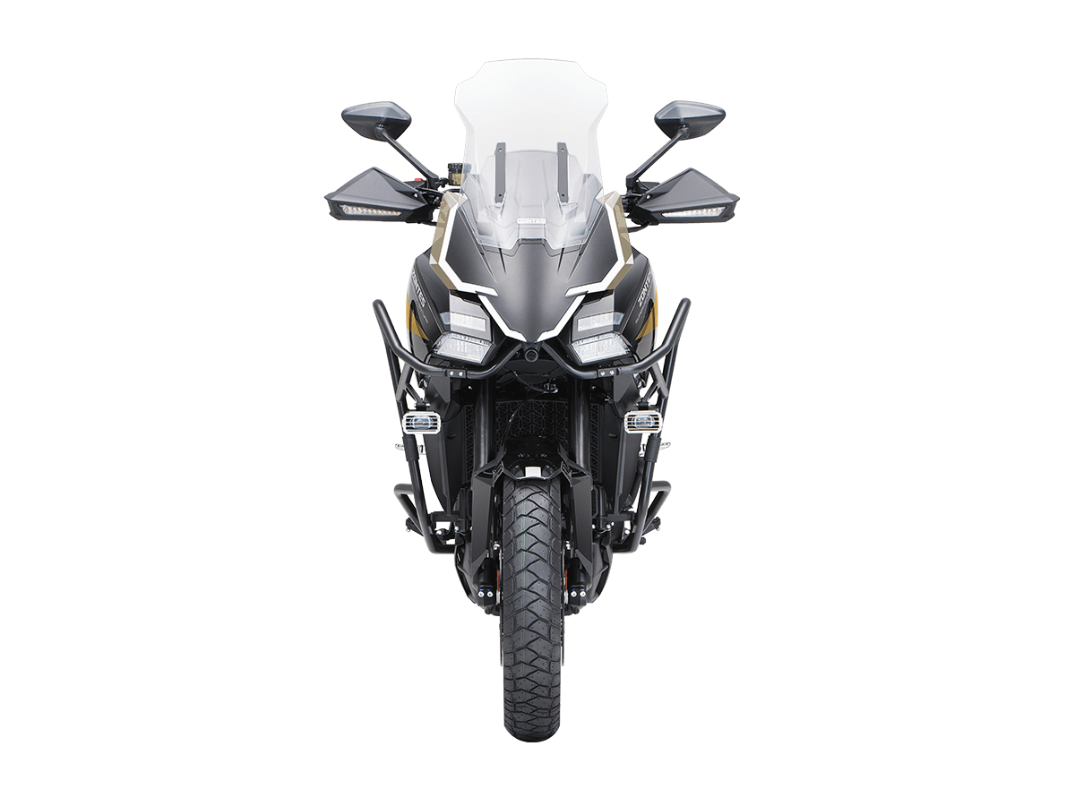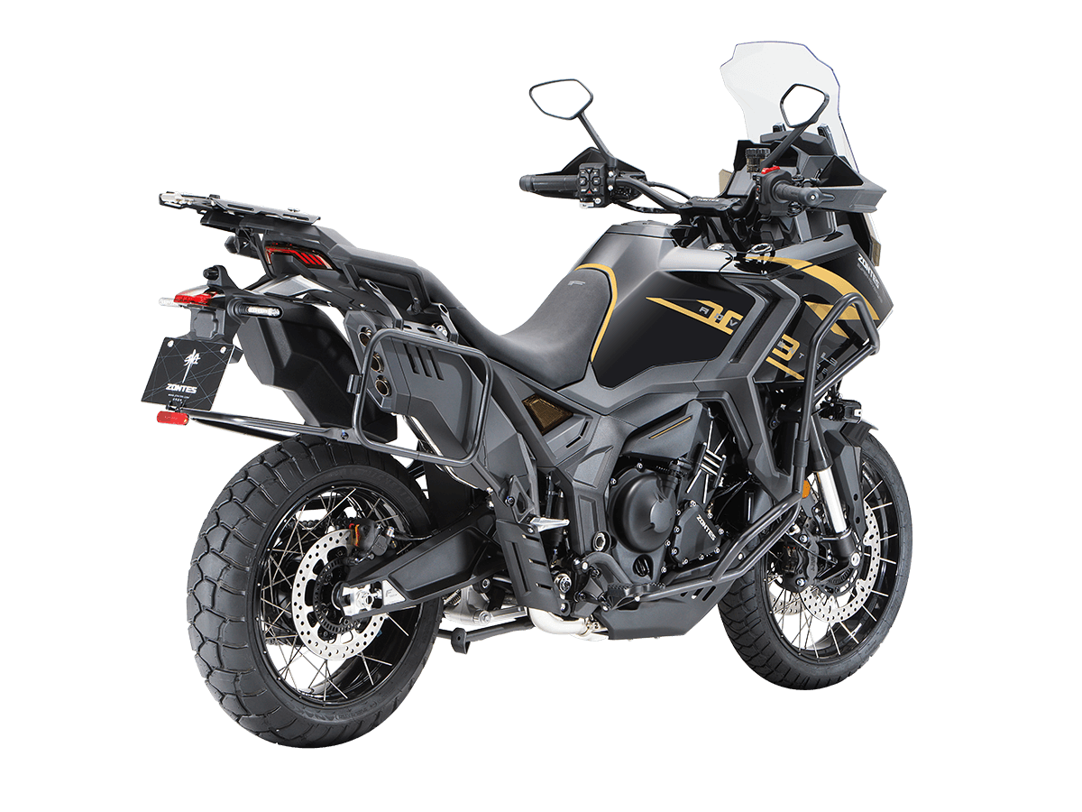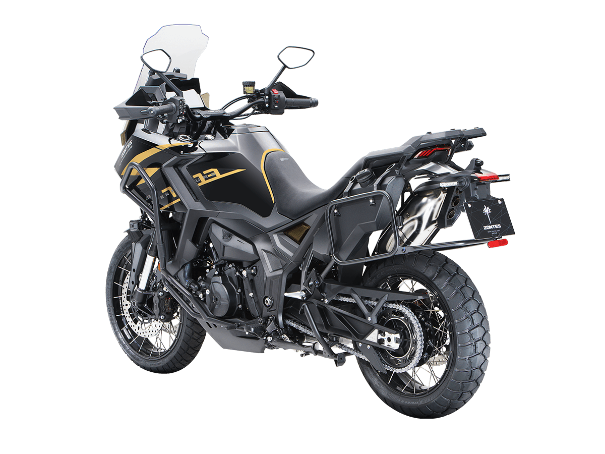 Мотоцикл ZONTES ZT703-F Tour 21/18 2025 – универсальный турэндуро, который подойдёт как для городских поездок, так и динамичных прохватов по грунту благодаря производительной подвеске. Узнайте, что такое настоящее наслаждение путешествием! Силовая установка представлена 3-цилиндровым 4-тактным двигателем объёмом 699 см³ с 4 клапанами на каждом цилиндре и 2 верхними распредвалами. Двигатель способен развивать мощность до 97,2 л.с. при 10 000 об/мин и высокий крутящий момент 76 Н·м при 7500 об/мин, что позволяет развивать большую скорость и с лёгкостью преодолевать трассы со сложным рельефом. Соотношение диаметра цилиндра и хода поршня 70х60,6 мм. Степень сжатия 13:1. Может работать в 2 режимах: ECO и SPORT. Запуск двигателя осуществляется с помощью бесключевого доступа. Установлена алюминиевая защита. Жидкостная система охлаждения эффективно поддерживает оптимальную температуру двигателя. На мотоцикл установлена 6-ступенчатая коробка передач, оснащённая квик-шифтером для переключения передач без использования рычага сцепления. В конструкции мотоцикла используется пространственная алюминиевая рама. Спереди и по бокам картера установлена металлическая защита двигателя. Выхлопная система оснащена стильным глушителем. Ёмкость топливного бака 22 литра. На мотоцикл установлены спицованные бескамерные колёса диаметром 21 дюйм спереди и 18 дюймов сзади. Подвеска изготовлена итальянским производителем MARZOCCHI. Спереди используется телескопическая вилка перевёрнутого типа с ходом 180 мм. Сзади установлен моноамортизатор с ходом 180 мм. Оба компонента регулируются. Дисковые гидравлические тормоза произведены компанией J.JUAN, входящей в холдинг BREMBO. Спереди используется двойной диск 310 мм с 4-поршневыми суппортами, а на заднем колесе расположен диск 260 мм с однопоршневым суппортом. Мотоцикл также оснащён 2-канальной ABS-системой с возможностью отключения, а также настраиваемой противобуксовочной системой. На мотоцикле используется яркая LED-оптика с дополнительным светом и многофункциональная приборная TFT-панель, положение которой можно регулировать. Рычаги тормоза и сцепления можно регулировать. Руль оснащён функцией подогрева и защитой рук. Спереди и сзади установлены видеорегистраторы. Мотоцикл оснащён датчиками давления в шинах. Ветровое стекло имеет электронную регулировку и настраивается через кнопки на руле. Имеется 2 USB-порта. Вещи можно перевозить в багажном отсеке, или присоединить кофры для перевозки: имеется площадка для установки центрального кофра и крепления для боковых кофров. Мотоцикл поставляется с центральной подножкой в комплекте. Габариты мотоцикла 2355x940x1395 мм. Колёсная база 1550 мм. Высота по седлу 830 мм. Вес 228 кг. Комплектация и внешний вид мотоцикла могут отличаться в зависимости от поставки. Изображение на сайте не гарантирует наличие тех или иных опций. Уточняйте информацию при оформлении заказа. ZONTES 703-F проверен на трассе «Золота Кагана» в Астраханской пустыне. Купить мотоцикл ZONTES ZT703-F Tour 21/18 2025 по выгодной цене можно онлайн на нашем сайте или в одном из салонов сети Роллинг Мото.